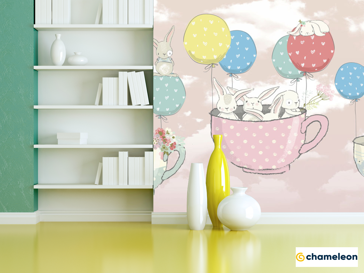 Фотошпалери «Фотошпалери Зайчика в чашках», (арт. 24194) - купити в інтернет-магазині «Будинок Фотошпалер» Хамелеон