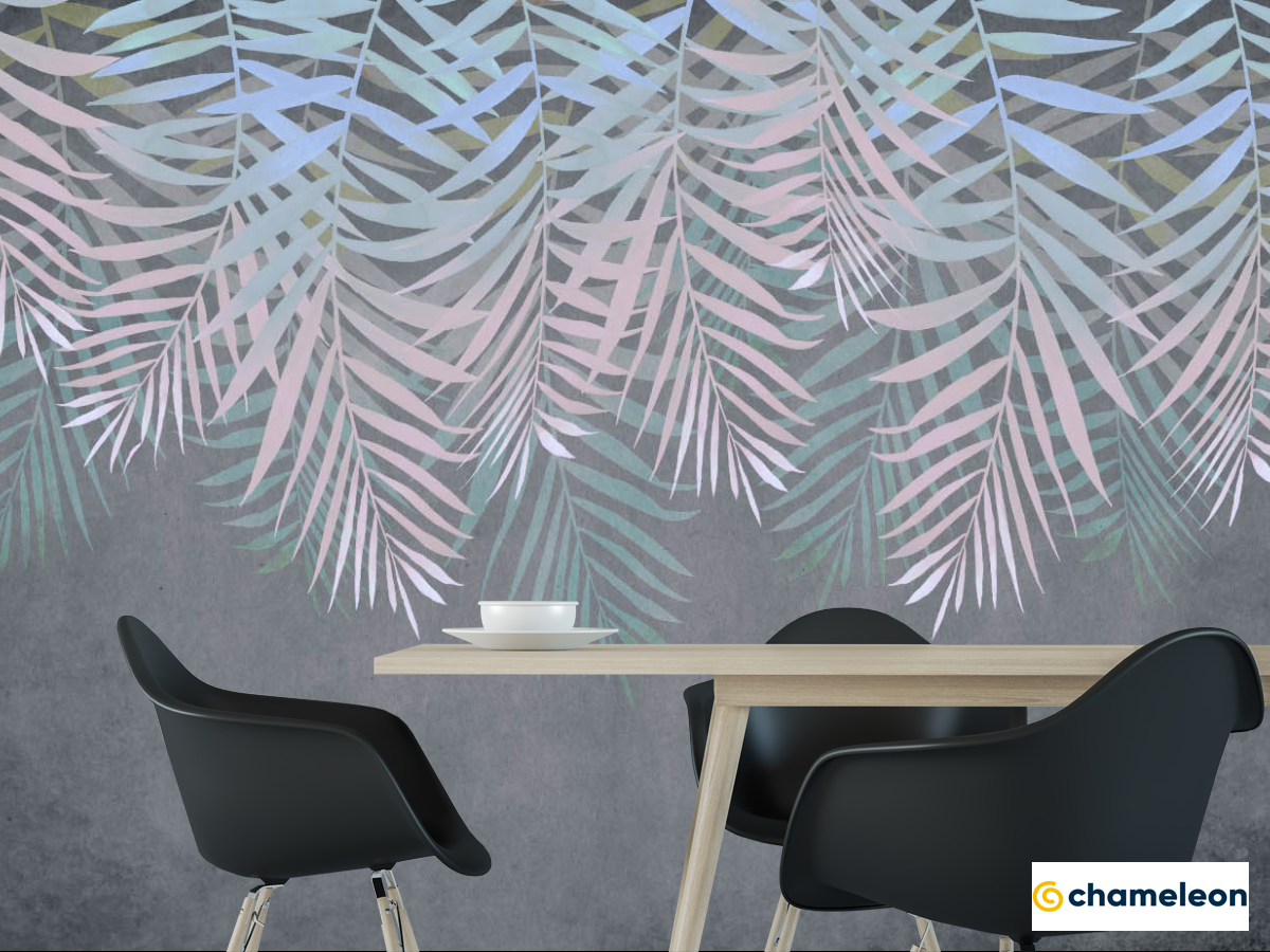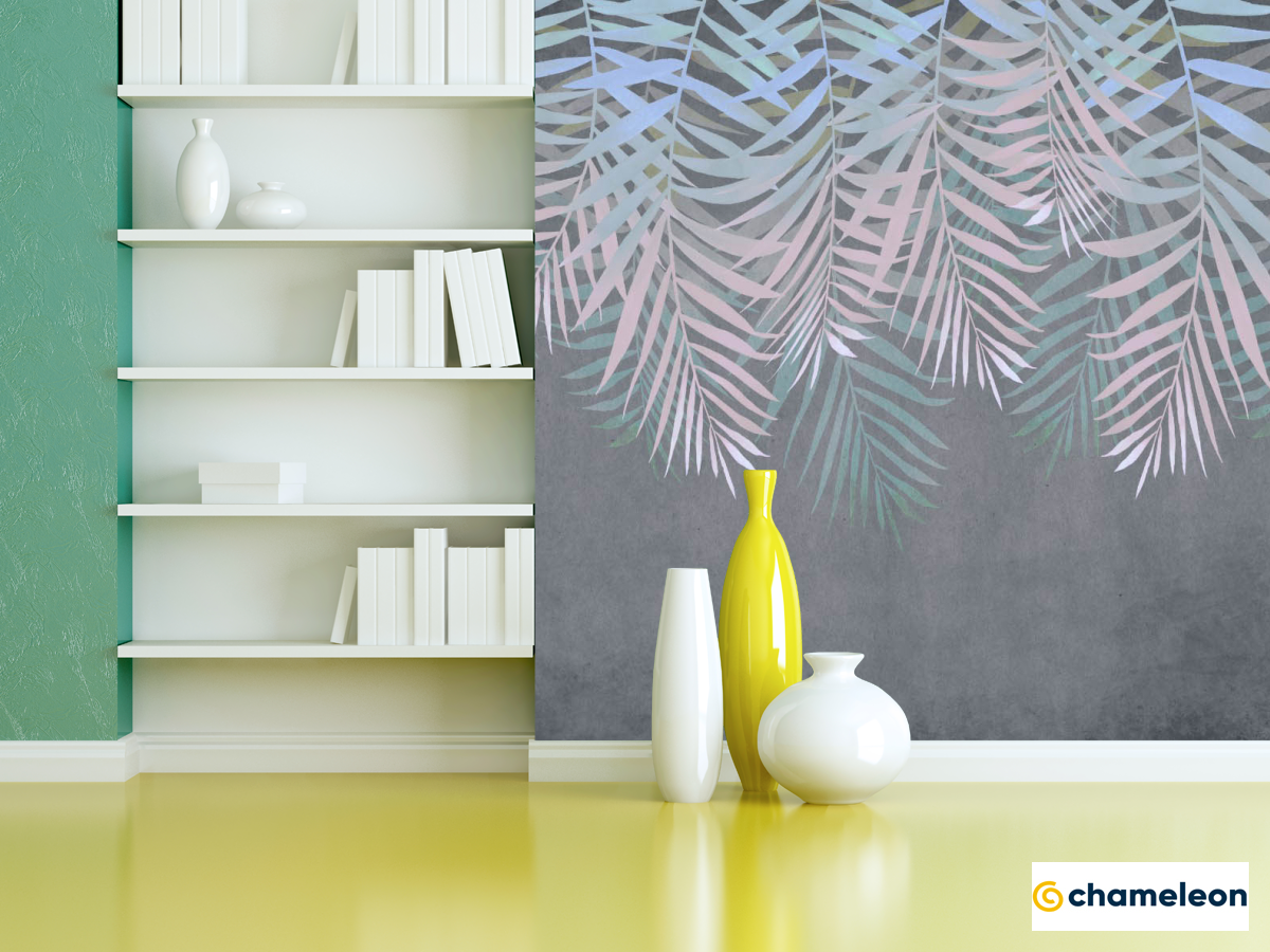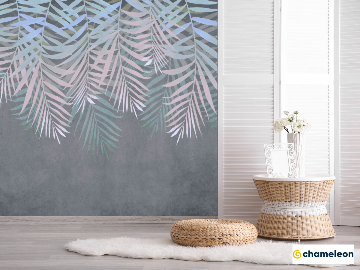 Фотошпалери «Фотошпалери Листя зі стелі на сірому», (арт. 24312) - купити в інтернет-магазині «Будинок Фотошпалер» Хамелеон
