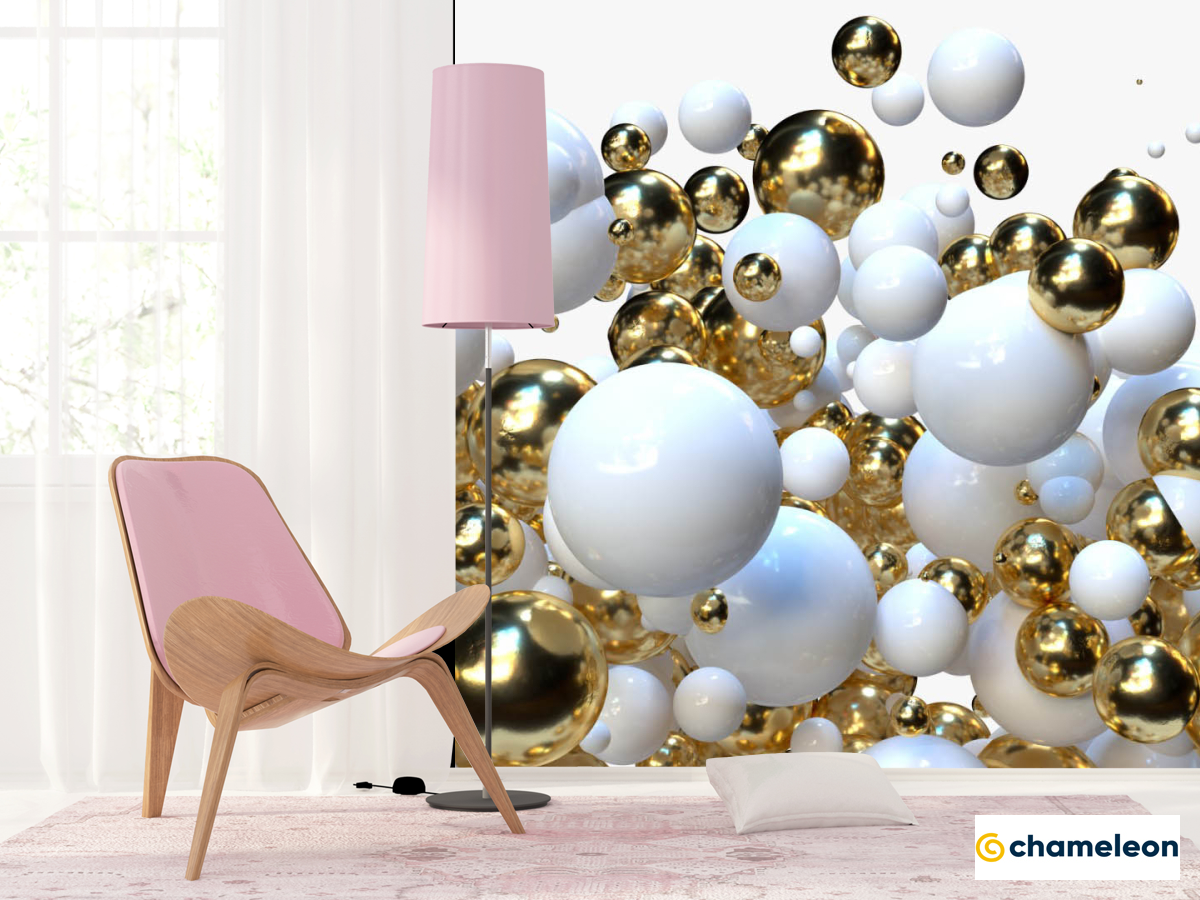 Фотошпалери «Фотошпалери Біло-золоті кулі 3д», (арт. 24599) - купити в інтернет-магазині «Будинок Фотошпалер» Хамелеон