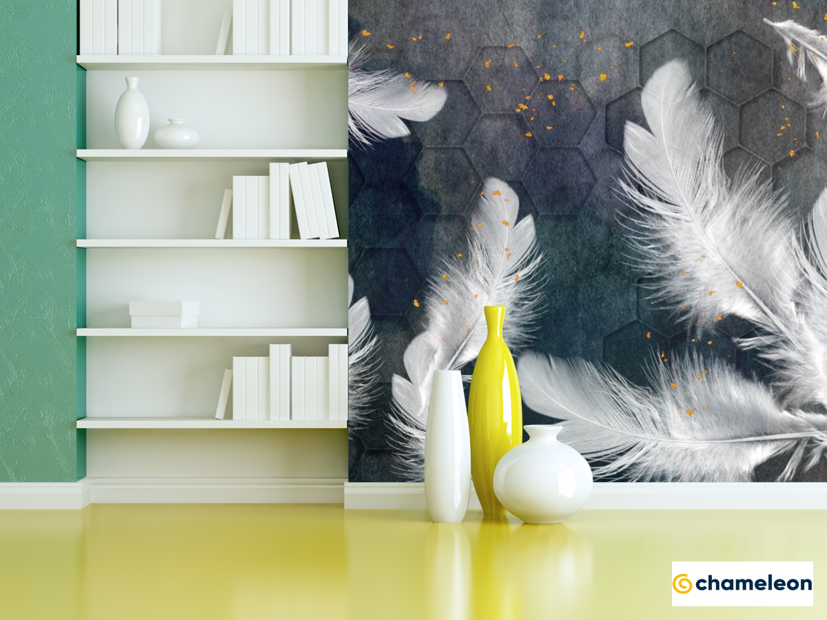 Фотошпалери «Фотошпалери Білі пір'я з золотом», (арт. 24943) - купити в інтернет-магазині «Будинок Фотошпалер» Хамелеон