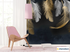 Фотошпалери «Фотошпалери Золоті пера 3д», (арт. 24995) - купити в інтернет-магазині «Будинок Фотошпалер» Хамелеон