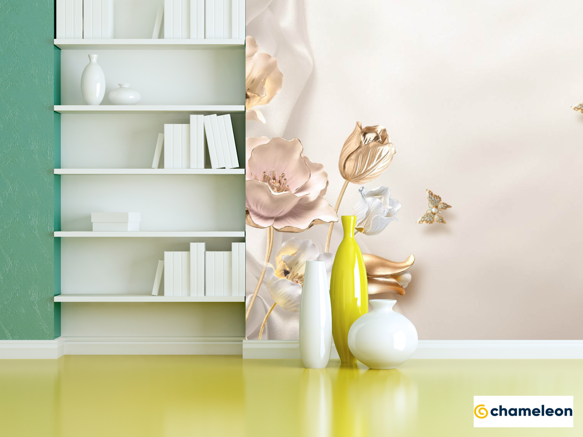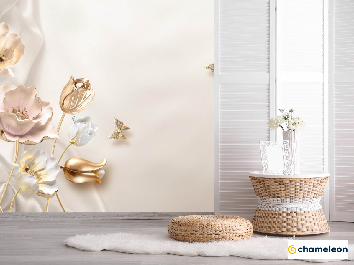 Фотошпалери «Фотошпалери Золоті квіти 3д», (арт. 25030) - купити в інтернет-магазині «Будинок Фотошпалер» Хамелеон