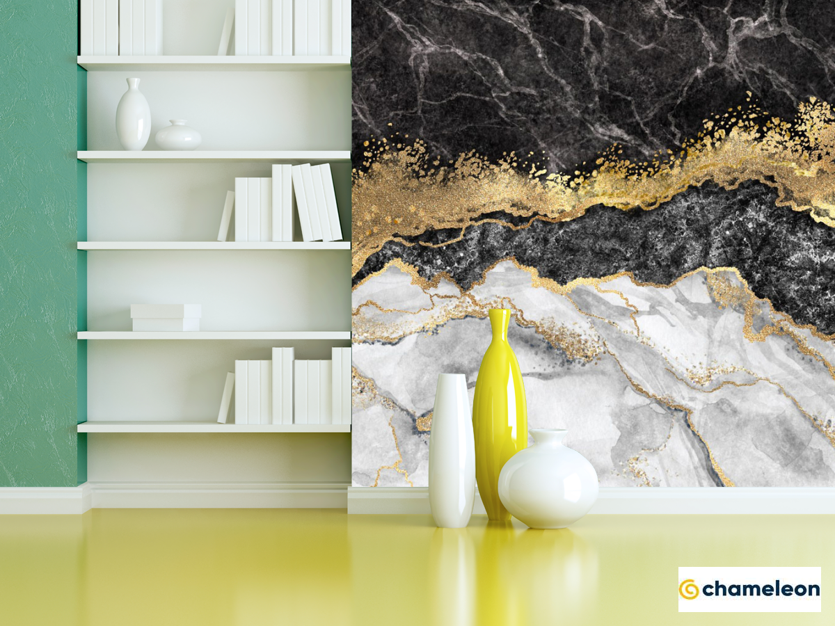 Фотошпалери «Фотошпалери чорний мармур золото», (арт. 25390g) - купити в інтернет-магазині «Будинок Фотошпалер» Хамелеон