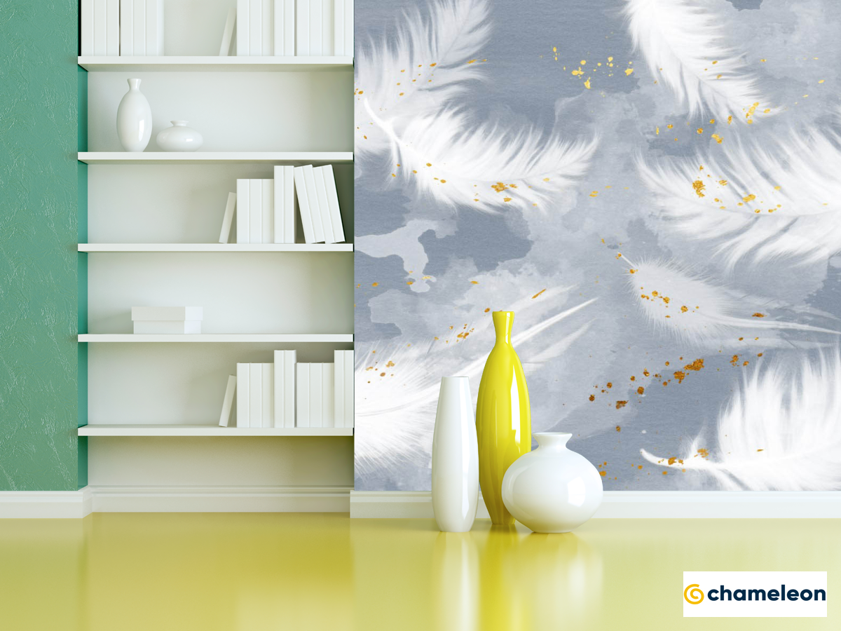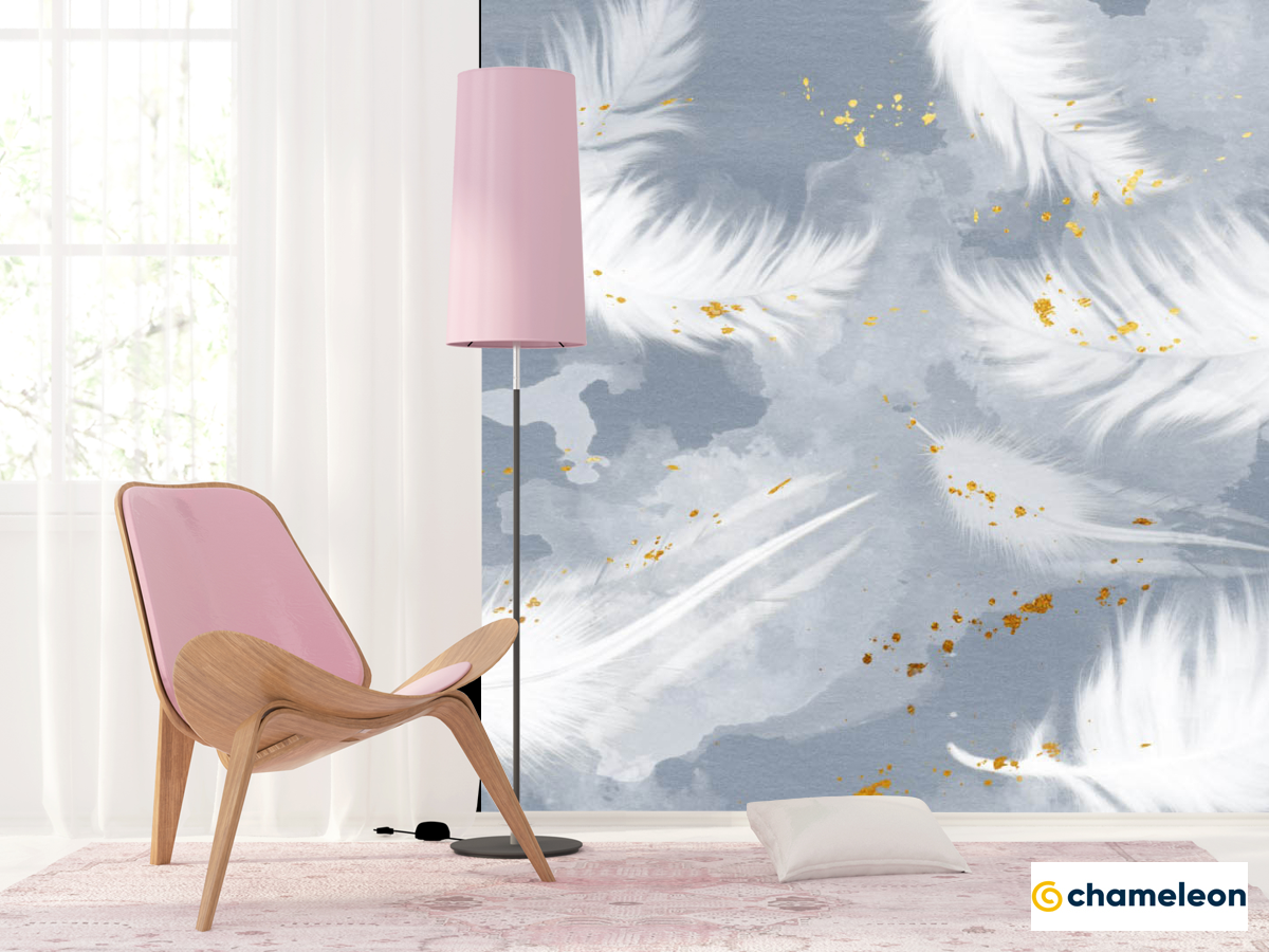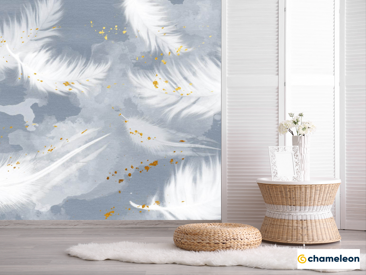 Фотошпалери «Фотошпалери Пір'я на блакитному з золотом», (арт. 25616) - купити в інтернет-магазині «Будинок Фотошпалер» Хамелеон