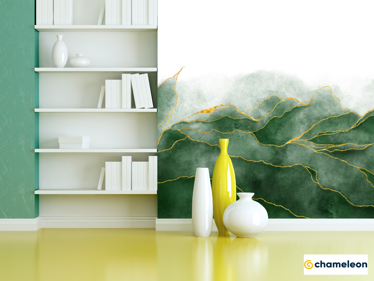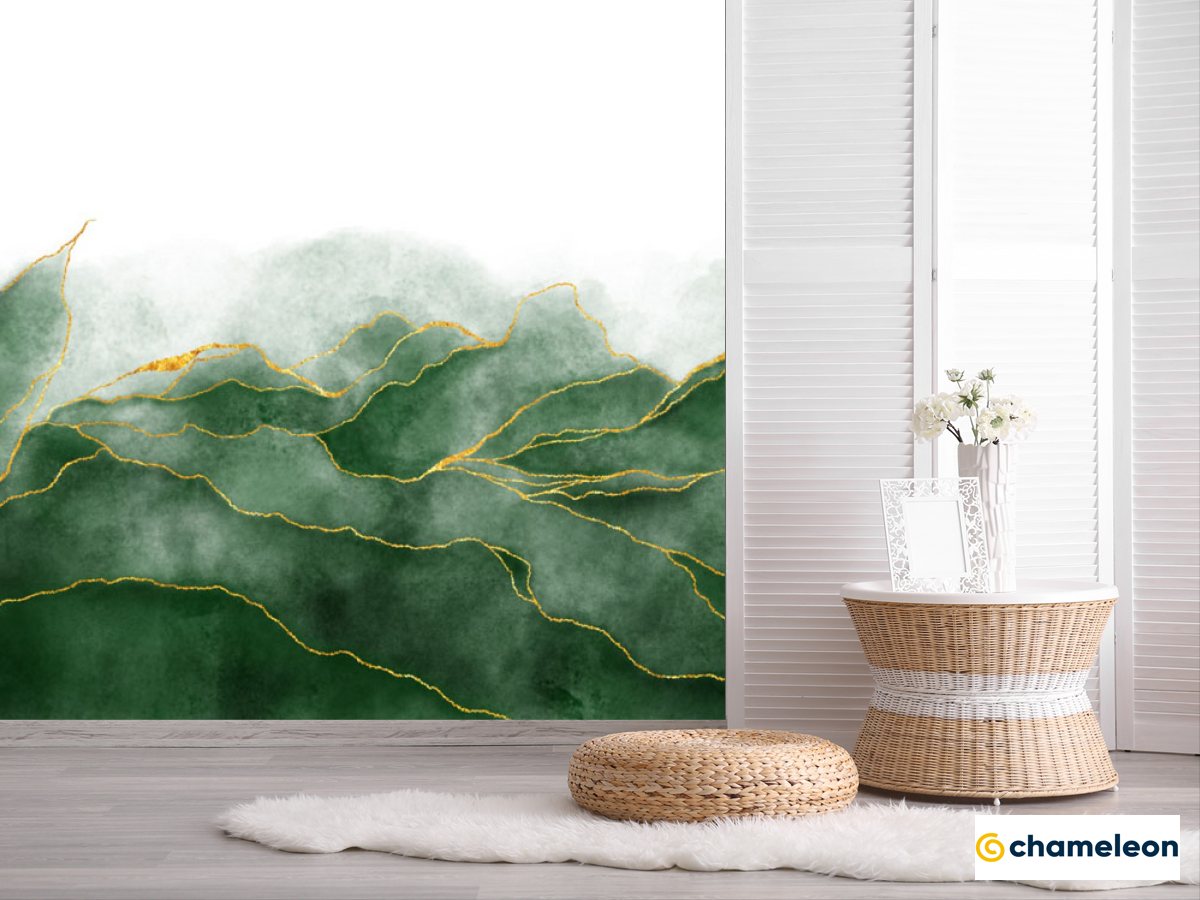 Фотошпалери «Фотошпалери Зелена акварель з золотом», (арт. 25910g) - купити в інтернет-магазині «Будинок Фотошпалер» Хамелеон