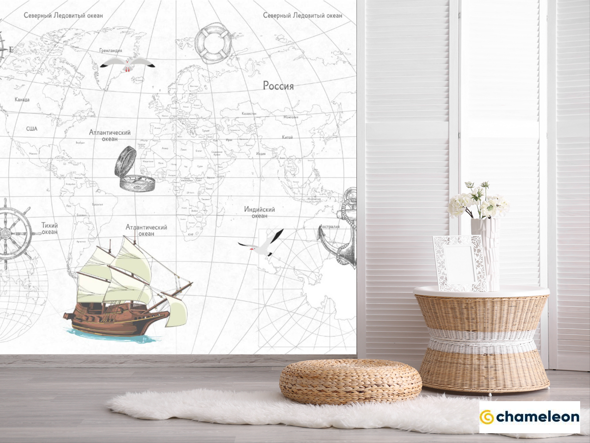 Фотошпалери «Фотошпалери Дитяча карта з кораблями», (арт. 25926) - купити в інтернет-магазині «Будинок Фотошпалер» Хамелеон