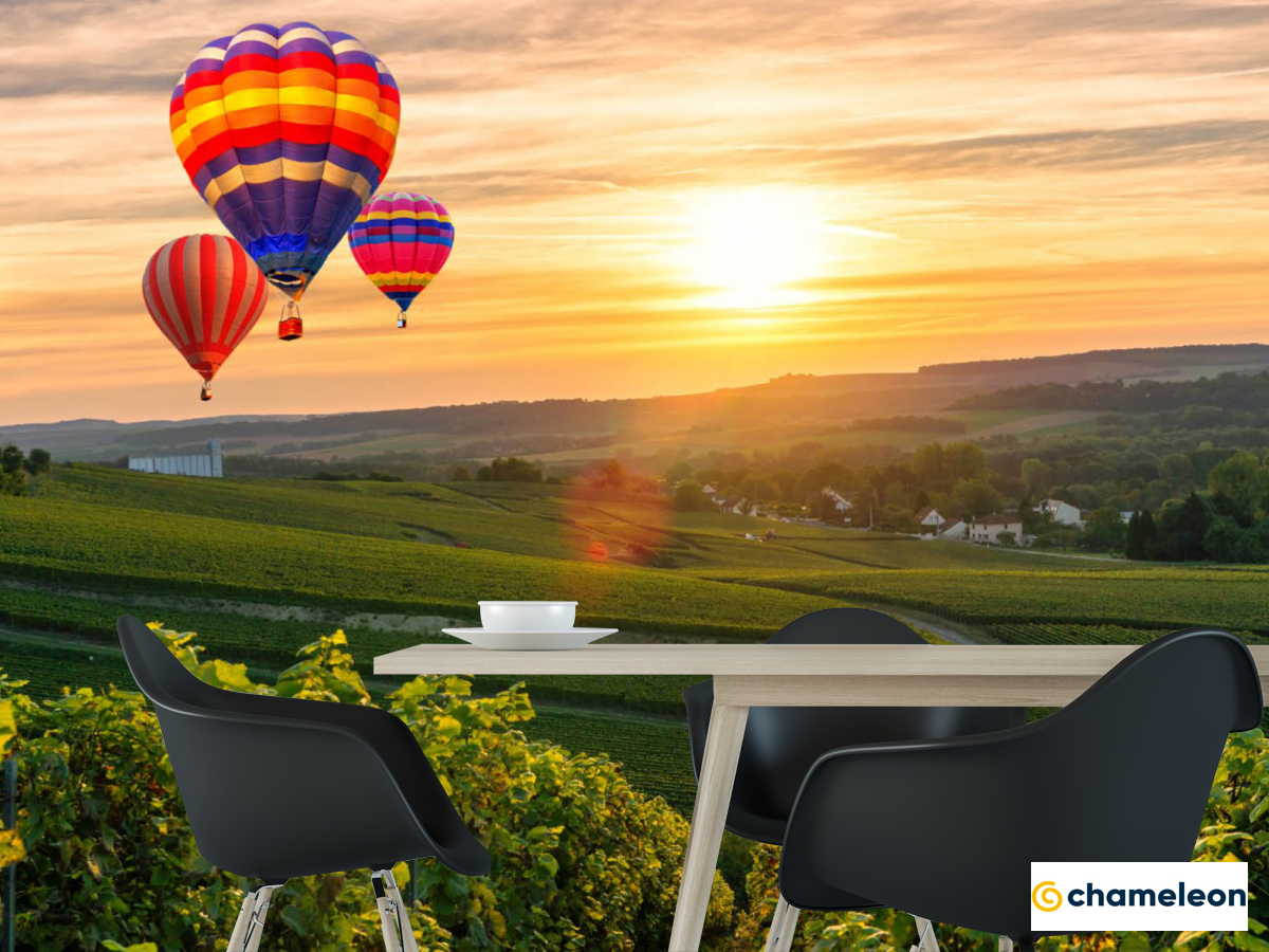 Фотошпалери «Фотошпалери Повітряні кулі на заході сонця», (арт. 25977) - купити в інтернет-магазині «Будинок Фотошпалер» Хамелеон