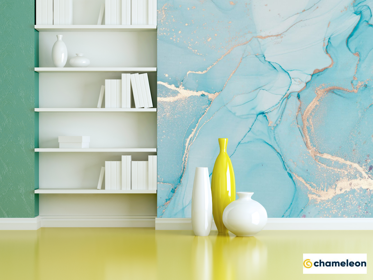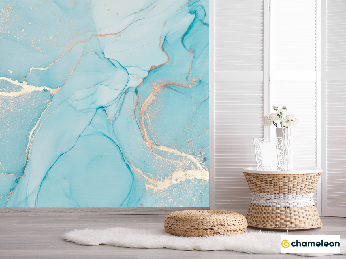 Фотошпалери «Фотошпалери Бірюзовий флюїд золото», (арт. 26123g) - купити в інтернет-магазині «Будинок Фотошпалер» Хамелеон