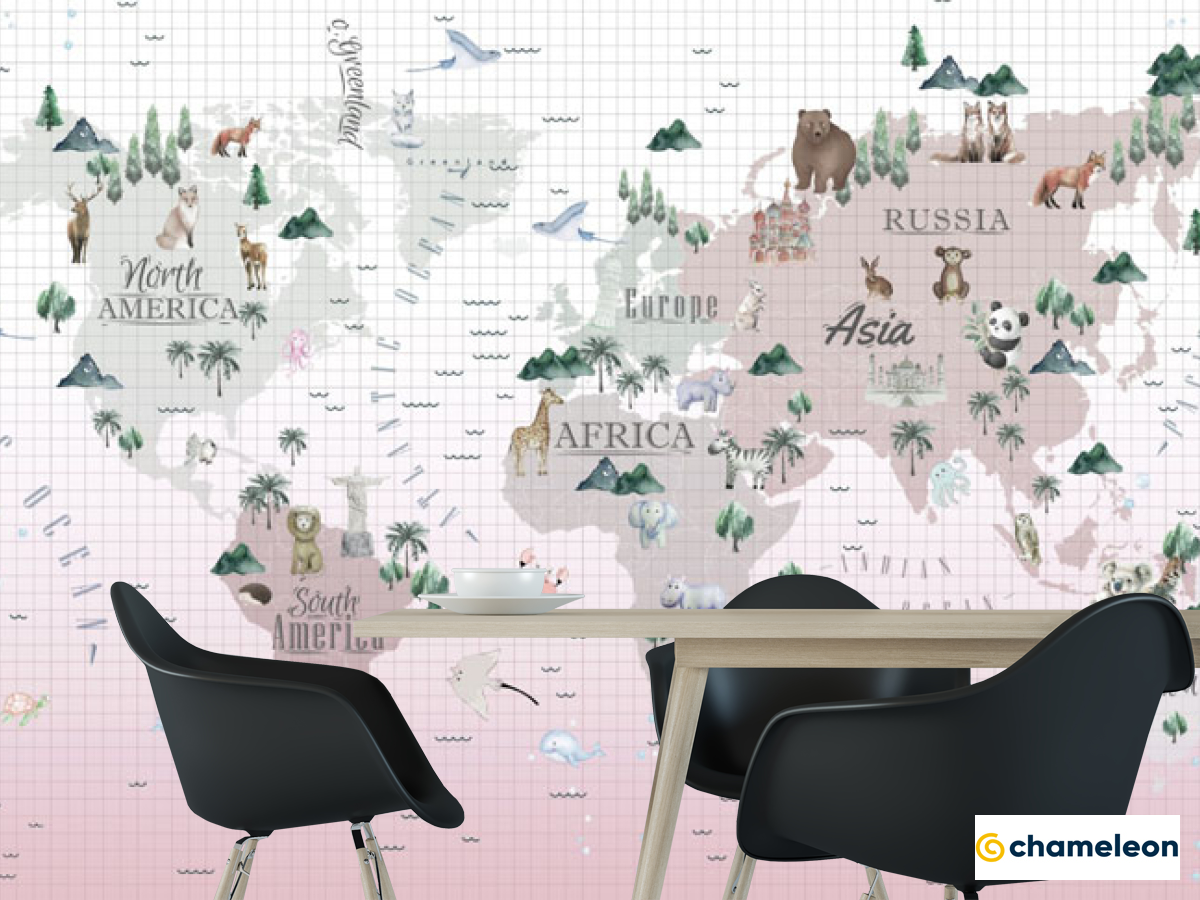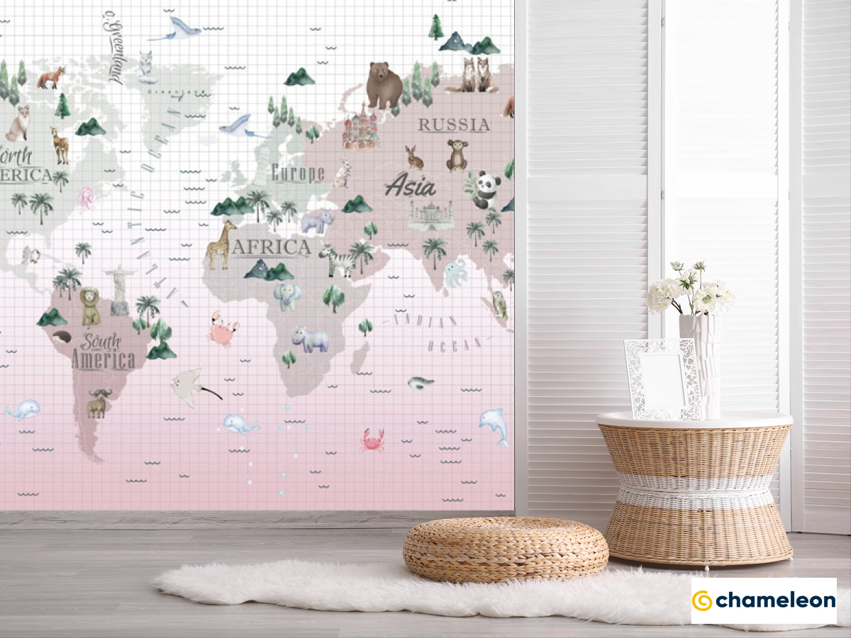 Фотошпалери «Фотошпалери рожева дитяча карта», (арт. 26414) - купити в інтернет-магазині «Будинок Фотошпалер» Хамелеон