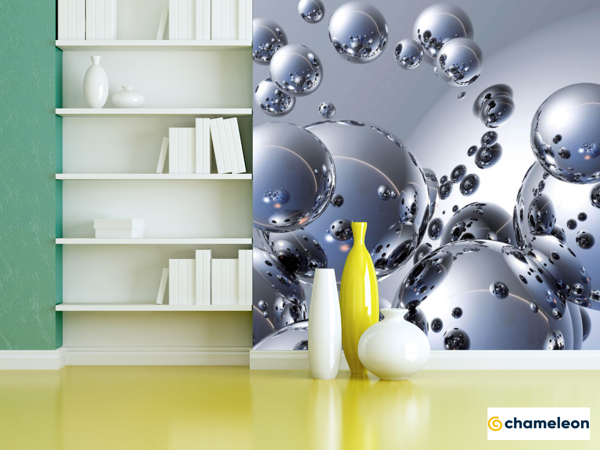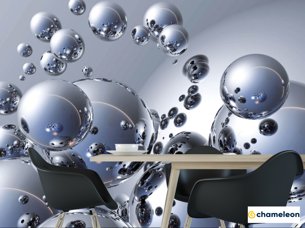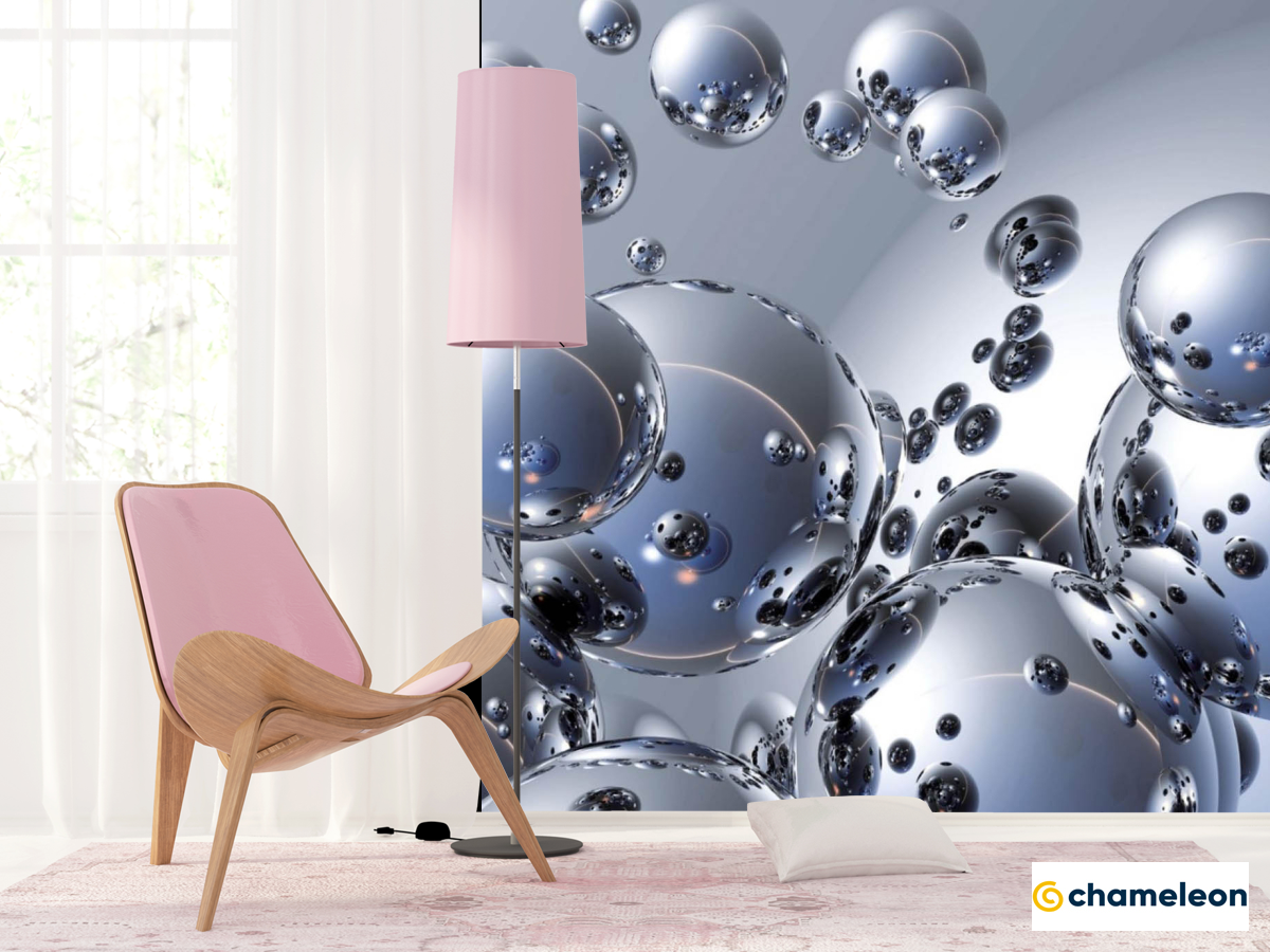 Фотошпалери «Фотошпалери металеві кулі 3д», (арт. 27066) - купити в інтернет-магазині «Будинок Фотошпалер» Хамелеон