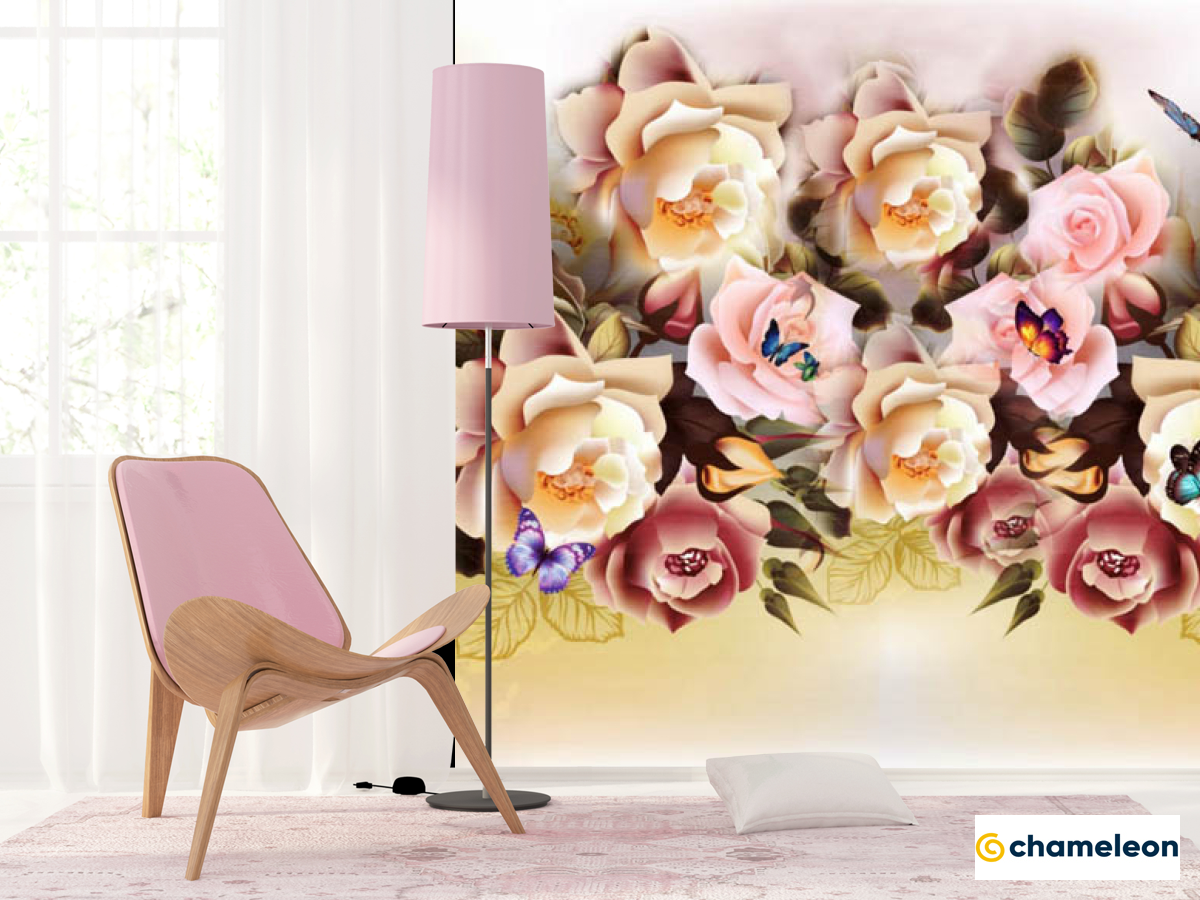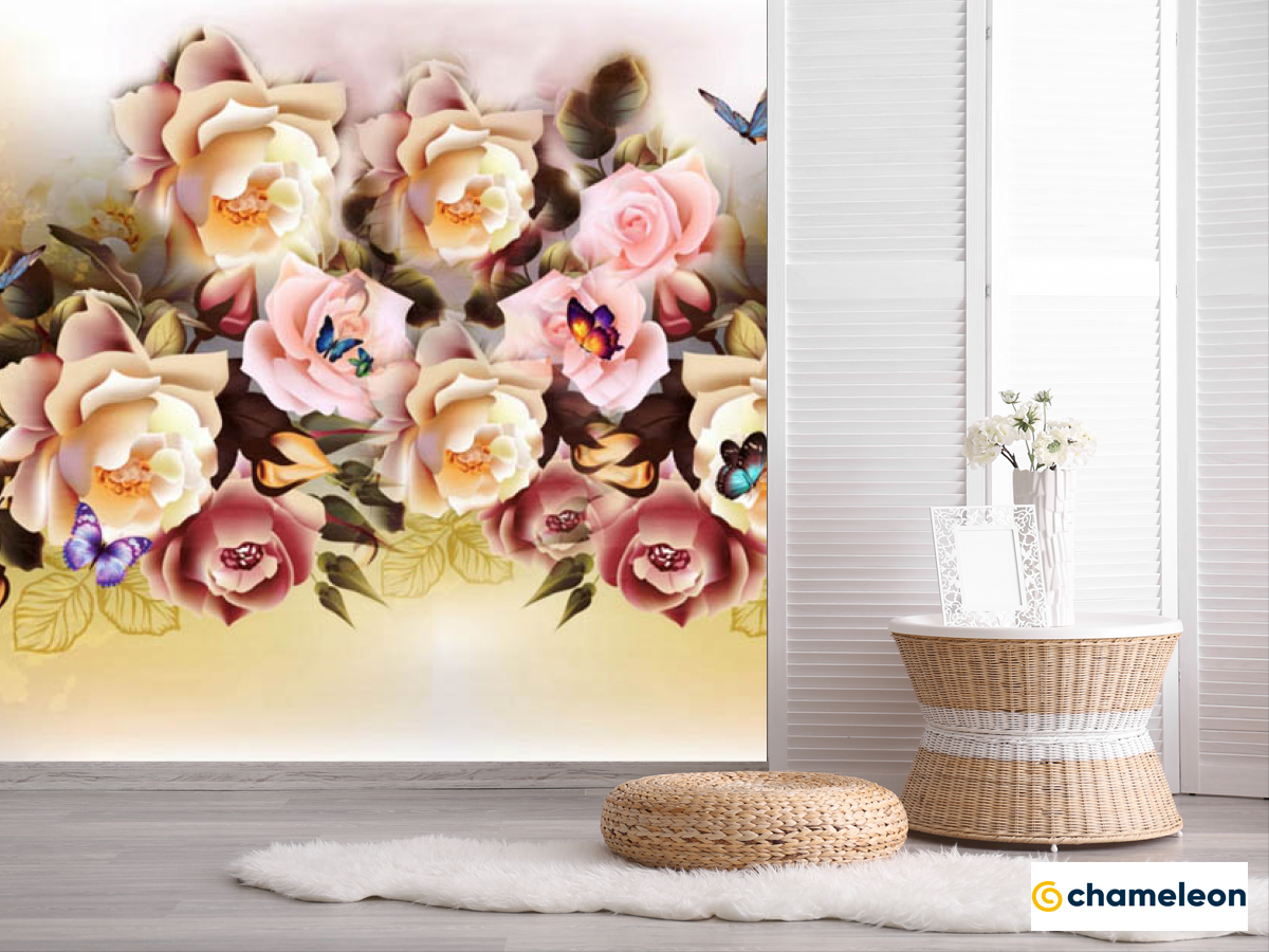 Фотошпалери мікс квітів з метеликами