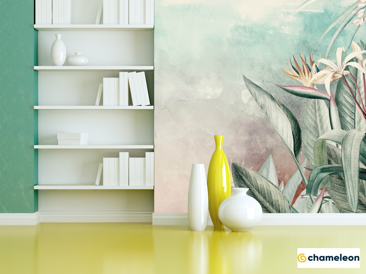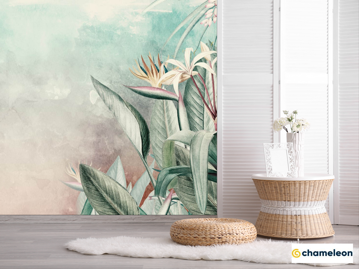 Фотошпалери «Фотошпалери квіти і листя тропічні», (арт. 27574) - купити в інтернет-магазині «Будинок Фотошпалер» Хамелеон