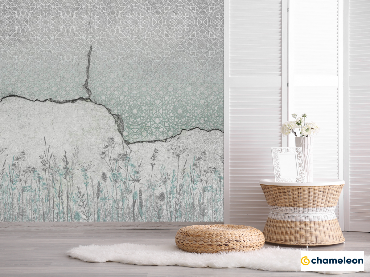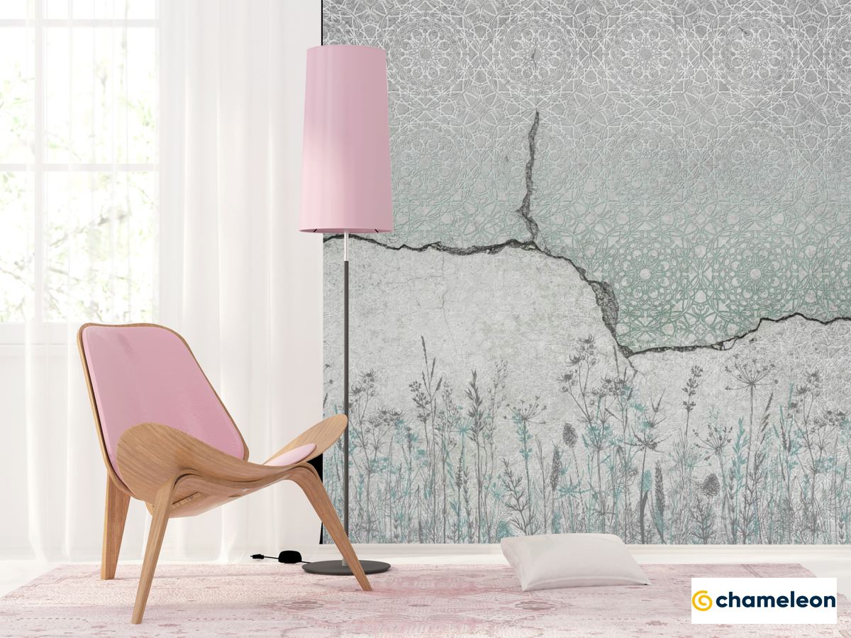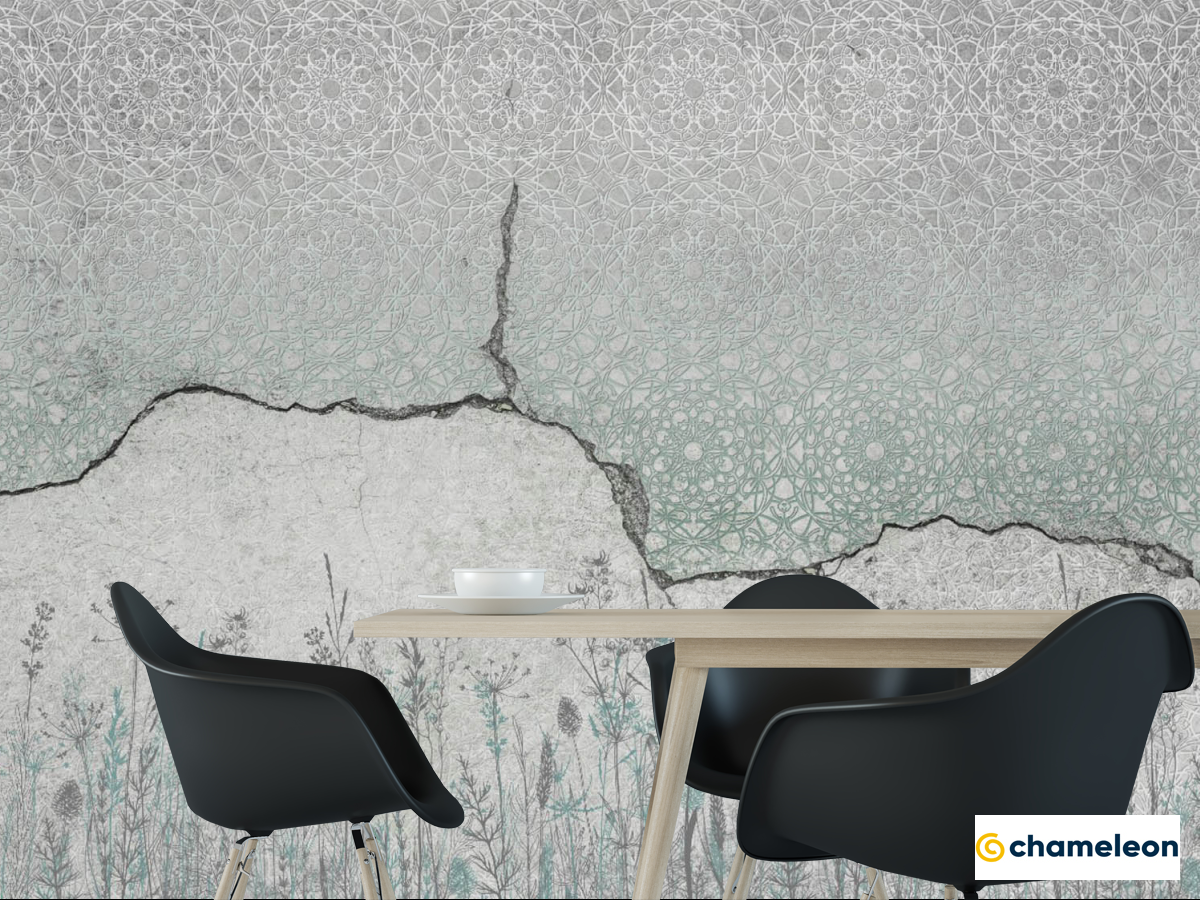 Фотошпалери Бетон з візерунком і ботанікою