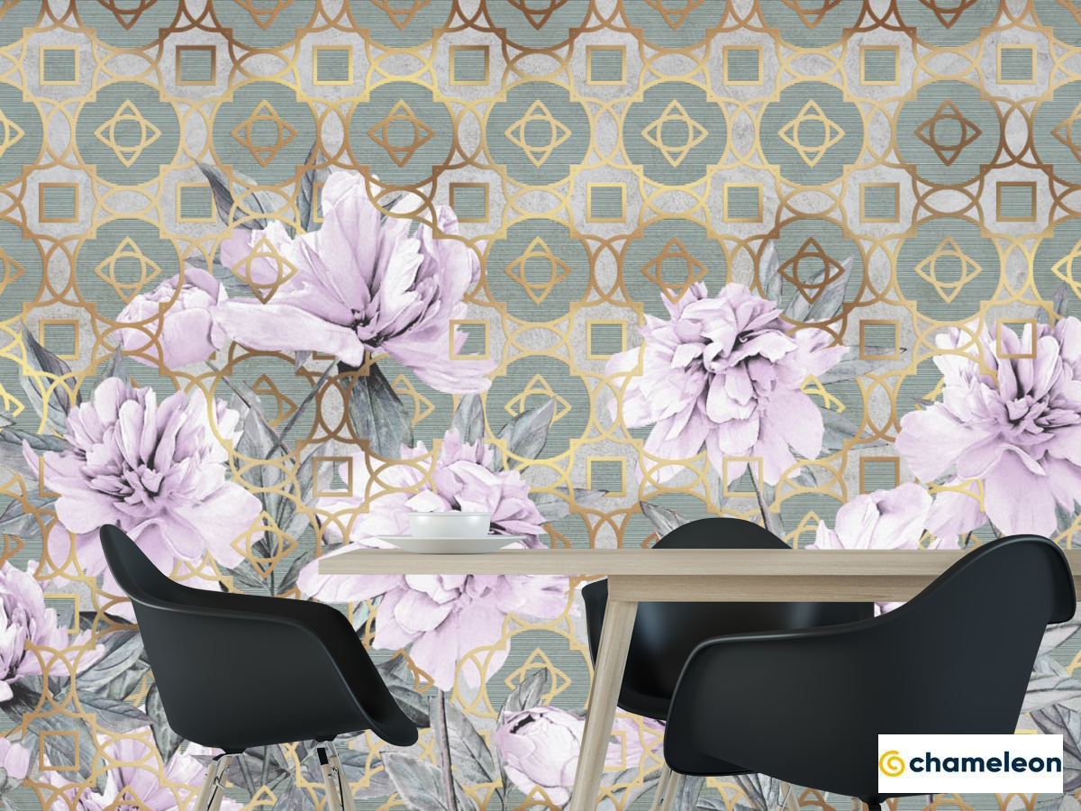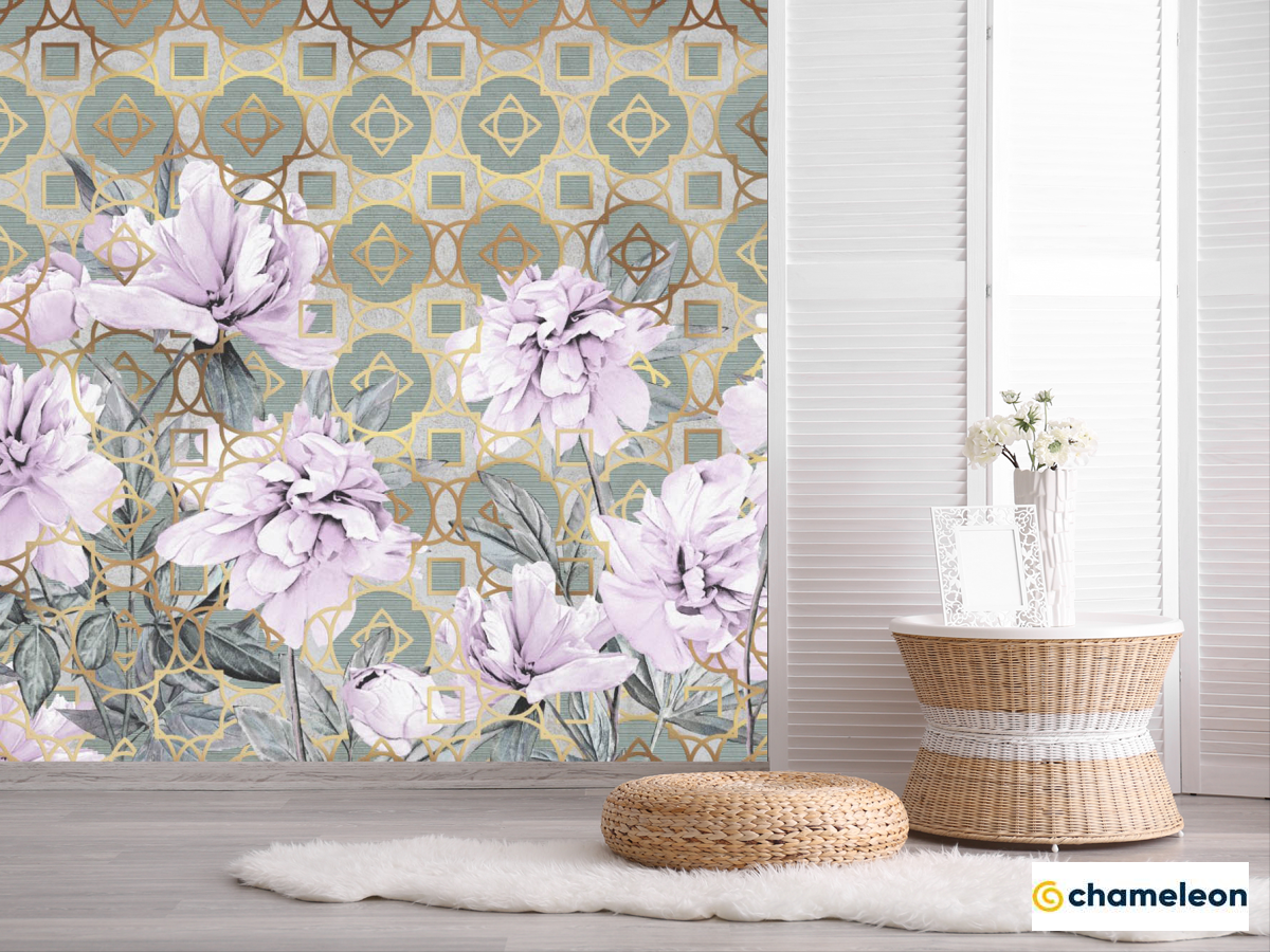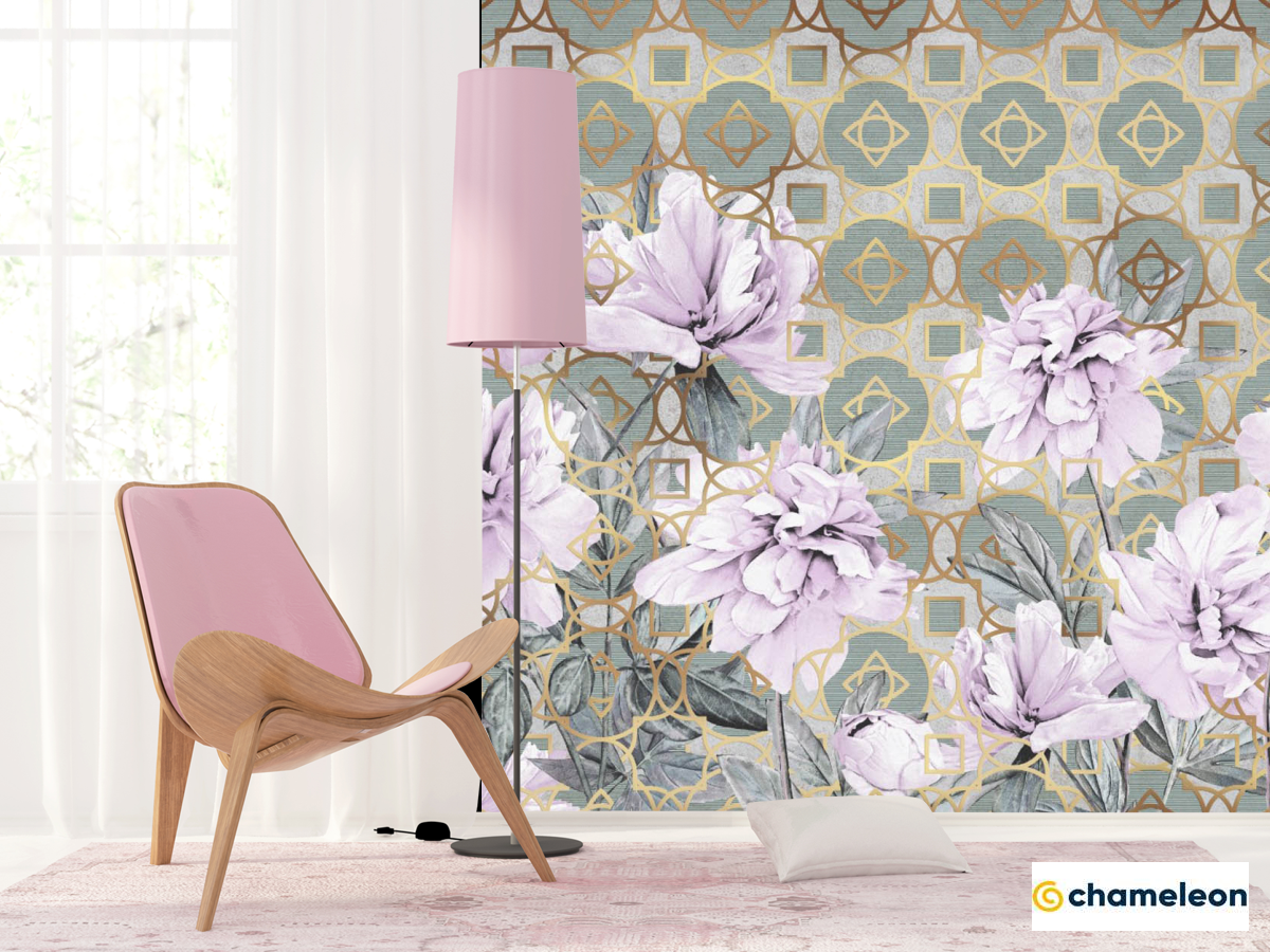 Фотошпалери «Фотошпалери півонії і візерунок», (арт. 27600) - купити в інтернет-магазині «Будинок Фотошпалер» Хамелеон