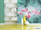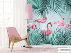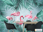 Фотошпалери «Фотошпалери фламінго на тропічних листках», (арт. 27623) - купити в інтернет-магазині «Будинок Фотошпалер» Хамелеон
