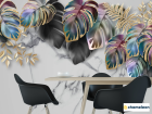 Фотошпалери «Фотошпалери Тропічні листя на мармурі», (арт. 27629) - купити в інтернет-магазині «Будинок Фотошпалер» Хамелеон