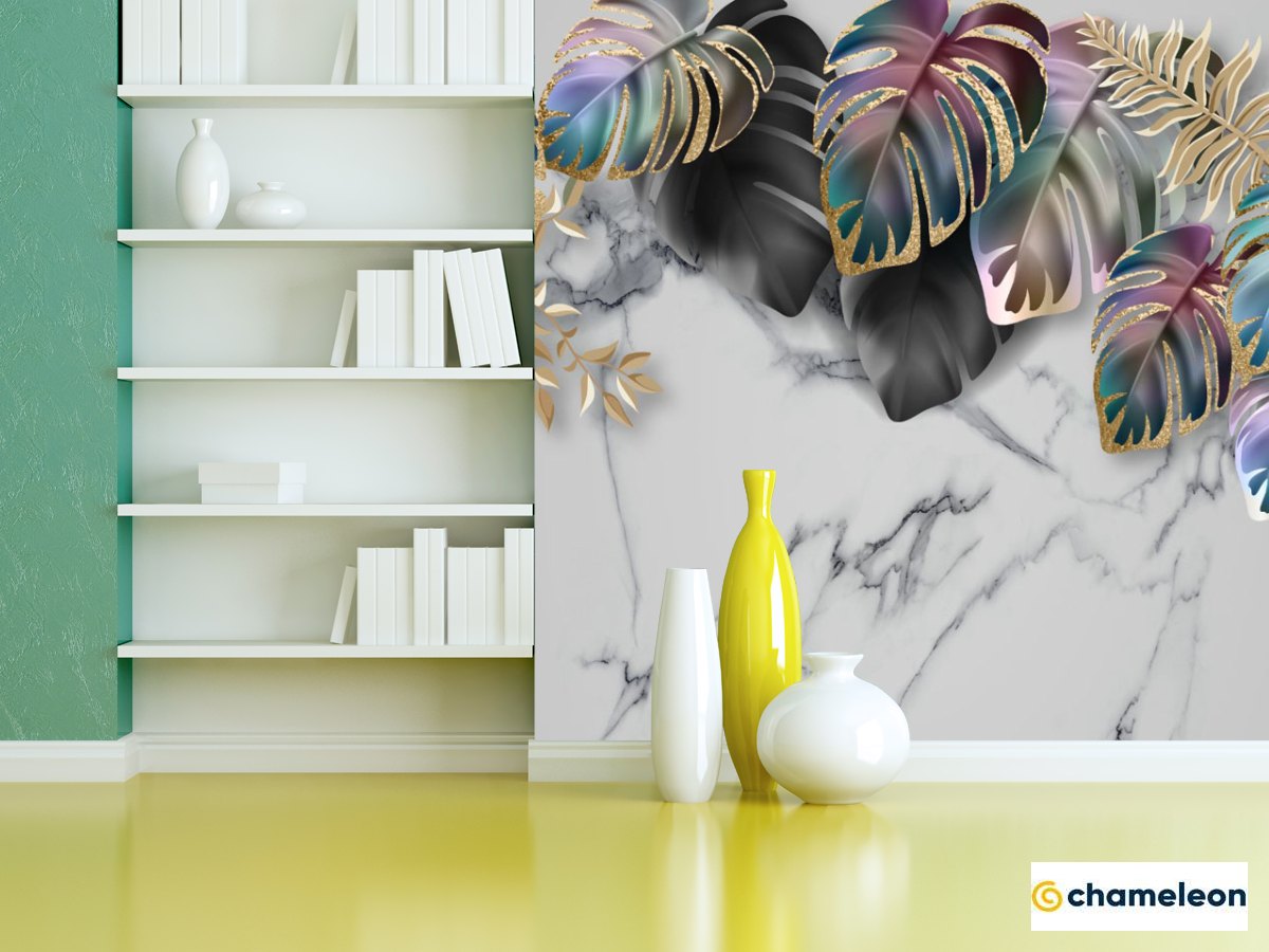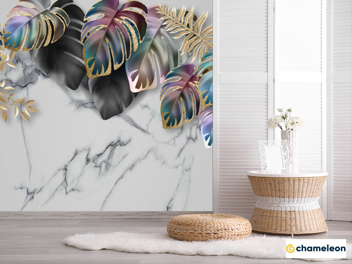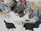 Фотошпалери «Фотошпалери тропічні листя з золотом», (арт. 27629g) - купити в інтернет-магазині «Будинок Фотошпалер» Хамелеон