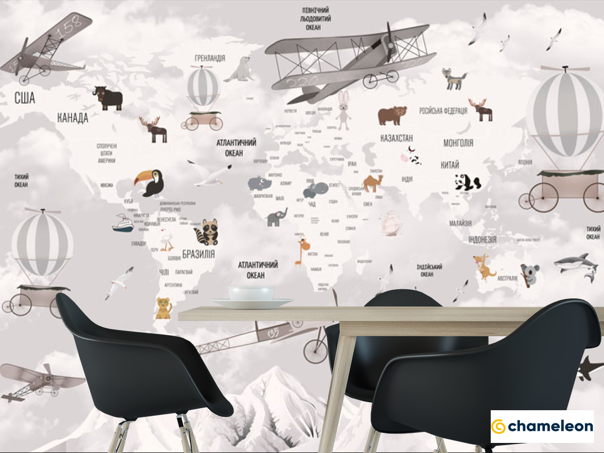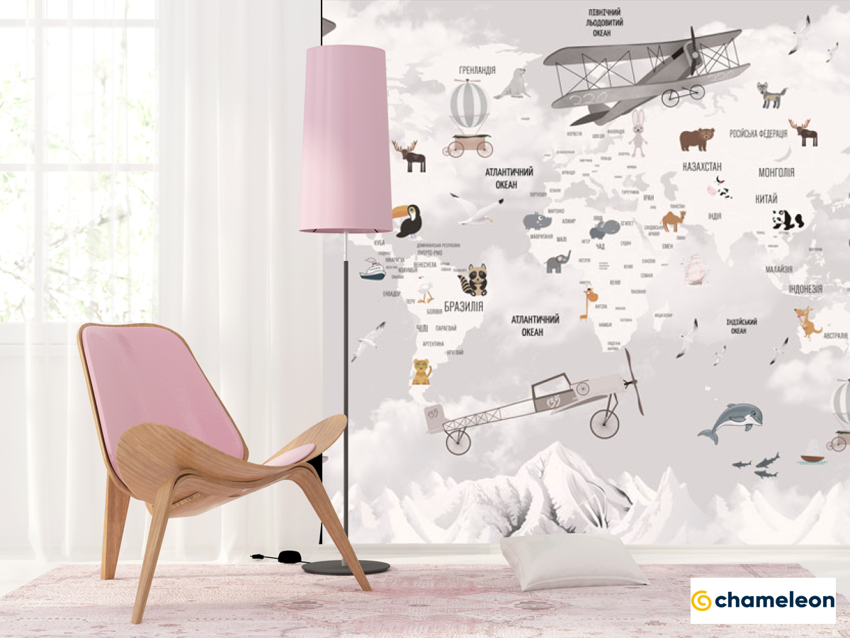 Фотошпалери «Фотошпалери Бежева карта дитяча мінімалістична українською мовою», (арт. 27737_1) - купити в інтернет-магазині «Будинок Фотошпалер» Хамелеон