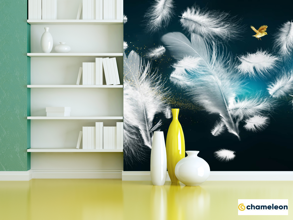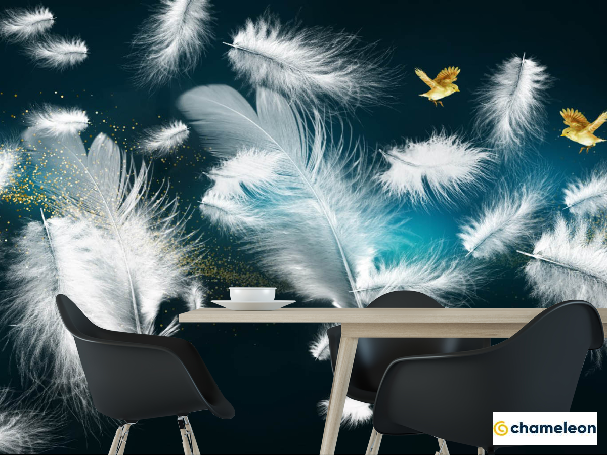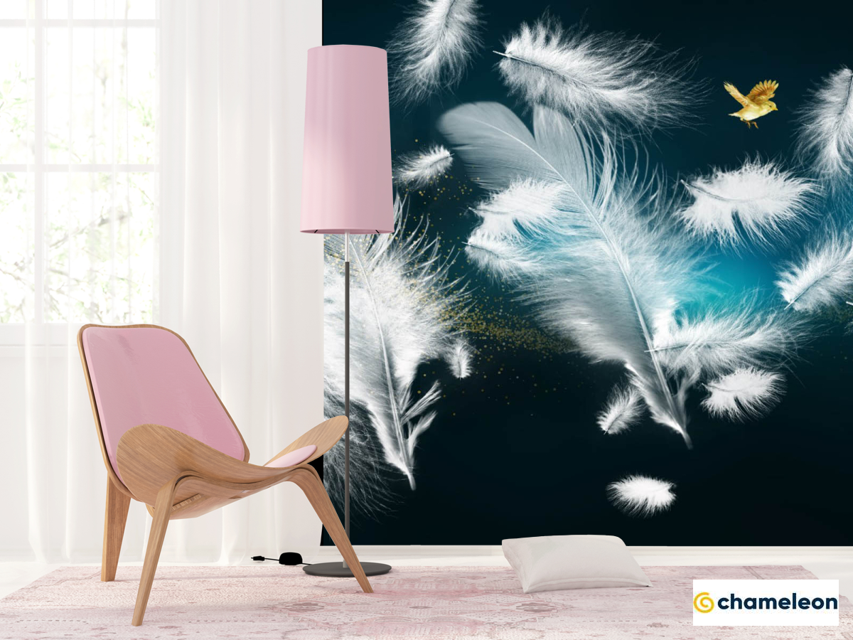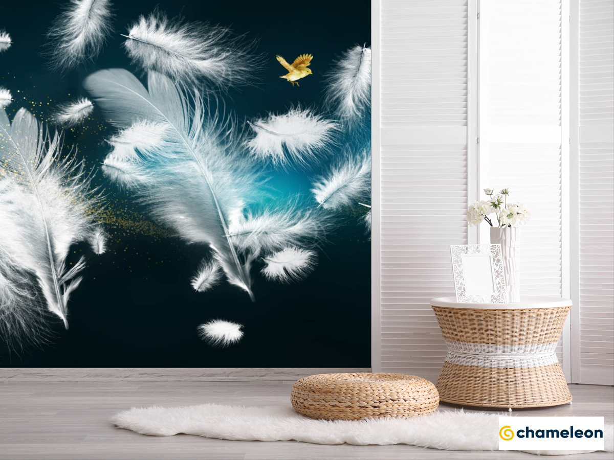 Фотошпалери біле пір'я і золото