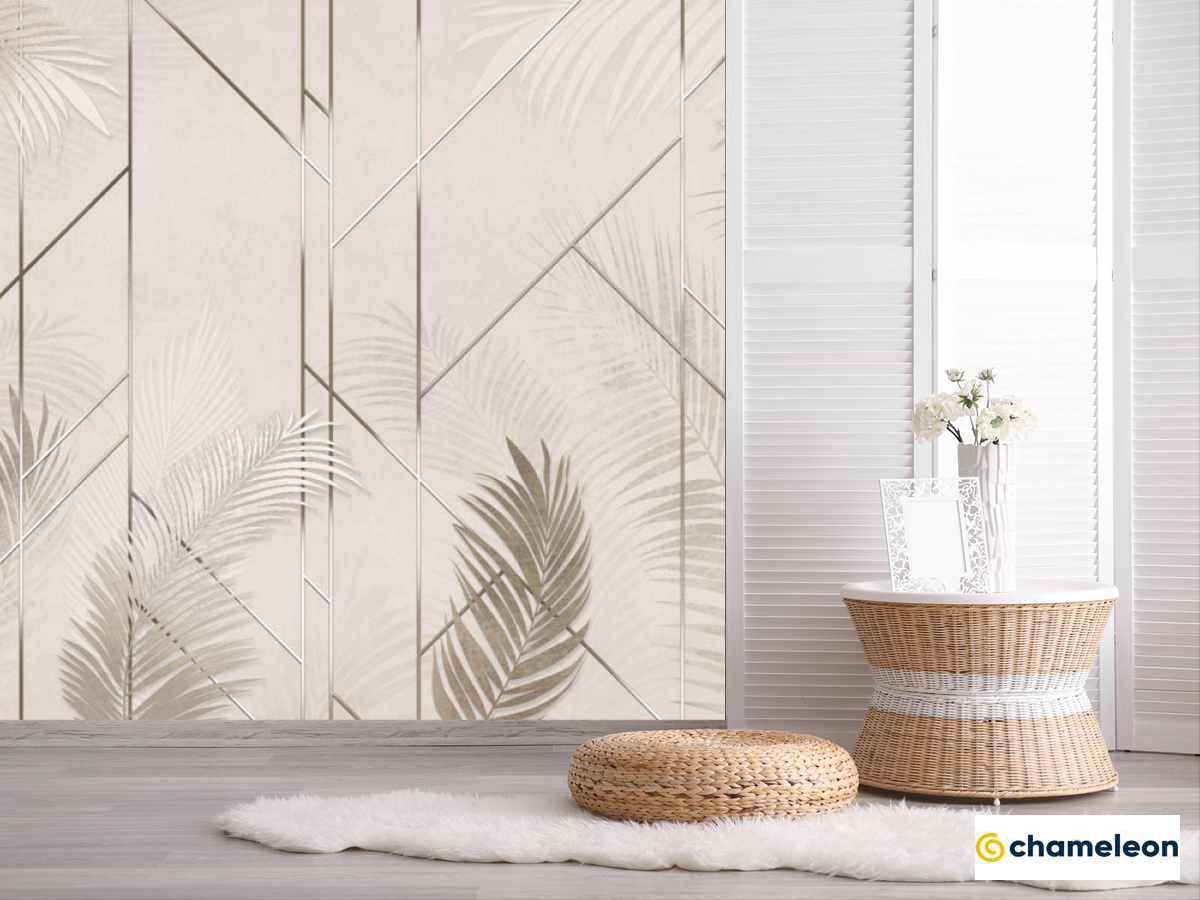 Фотошпалери «Фотошпалери геометрія і пальмові гілки», (арт. 28173) - купити в інтернет-магазині «Будинок Фотошпалер» Хамелеон