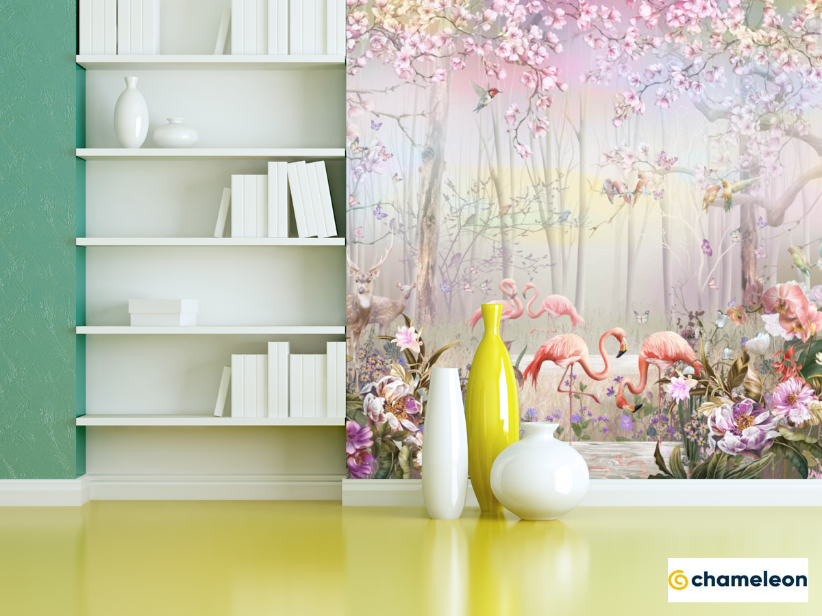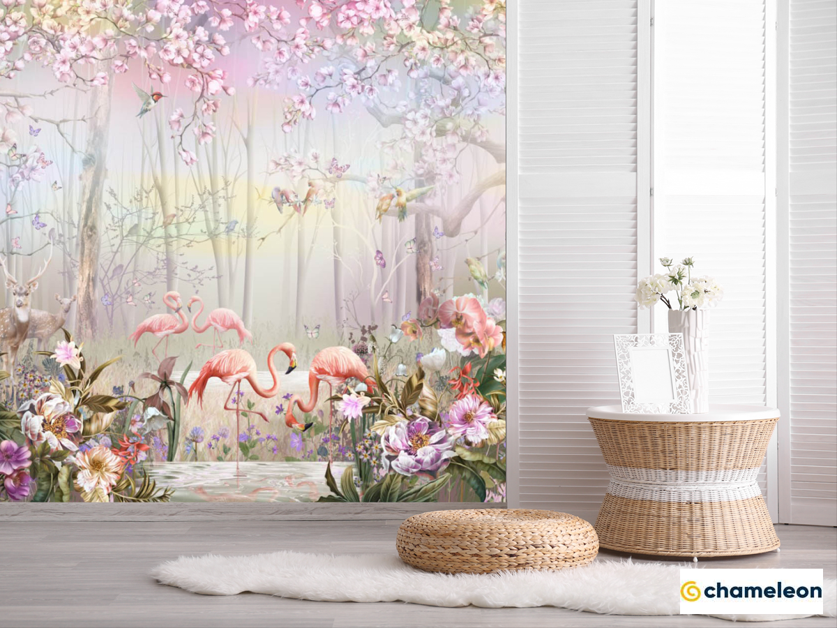 Фотошпалери «Фотошпалери ліс і фламінго», (арт. 28181) - купити в інтернет-магазині «Будинок Фотошпалер» Хамелеон