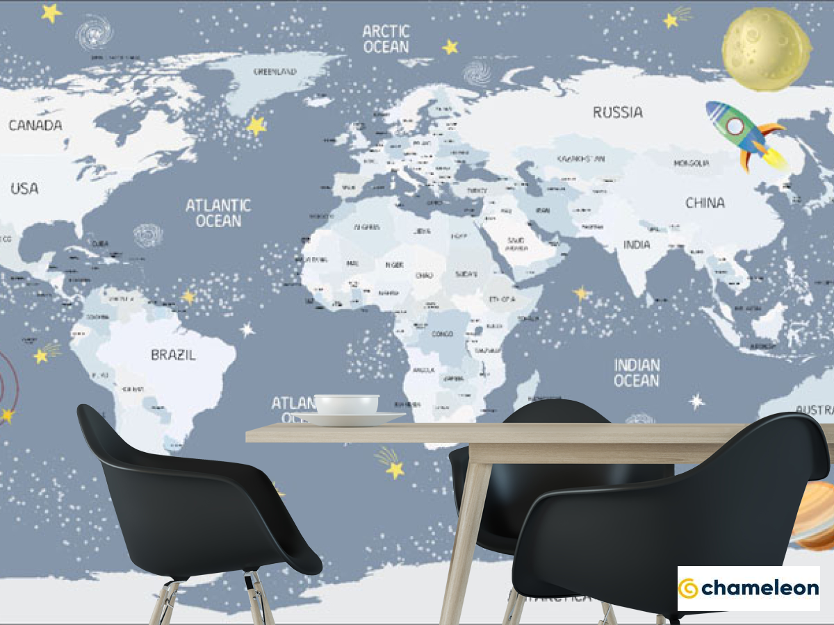 Фотошпалери «Фотошпалери блакитна карта дитяча англійською мовою», (арт. 28626_1) - купити в інтернет-магазині «Будинок Фотошпалер» Хамелеон