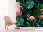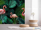 Фотошпалери фламінго на тропічних листках