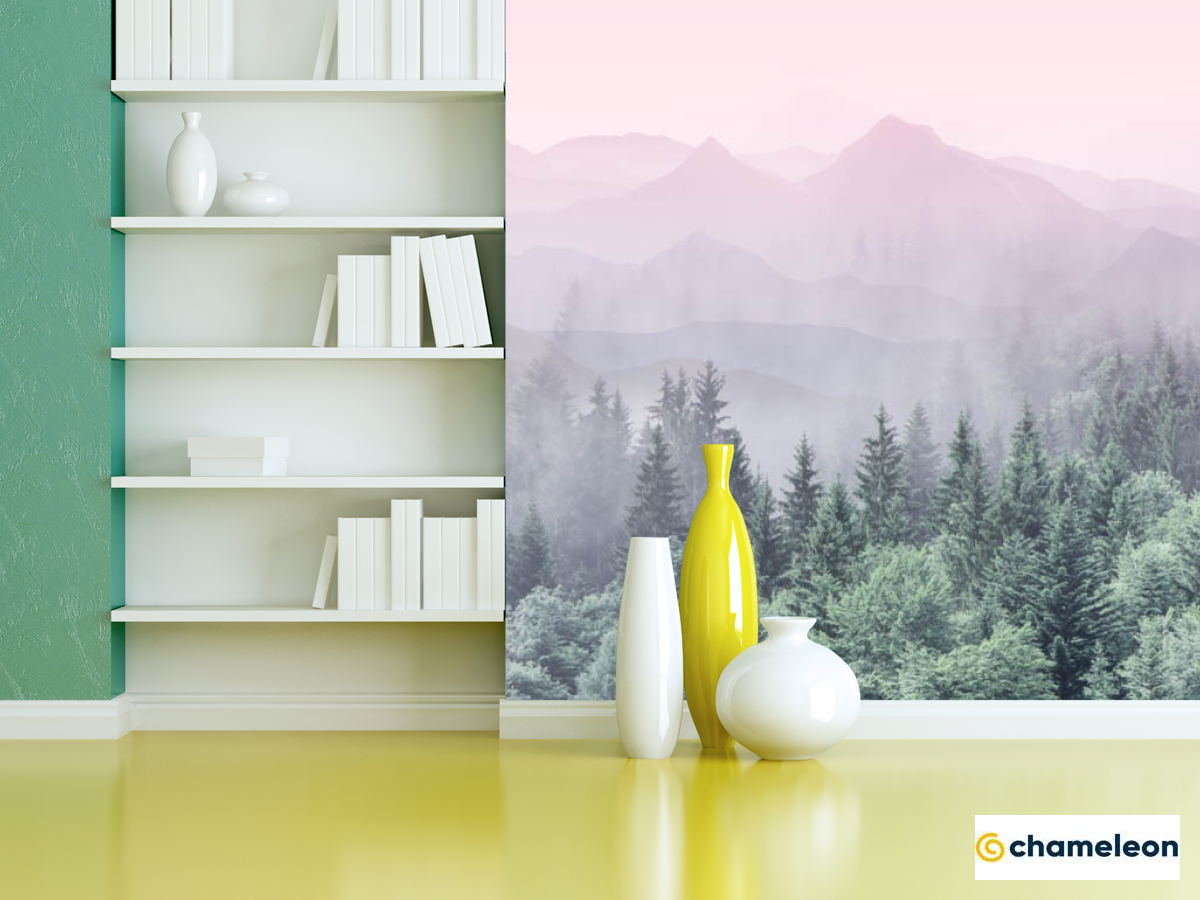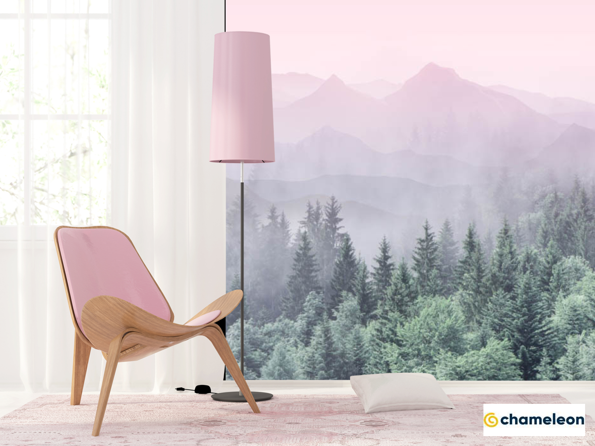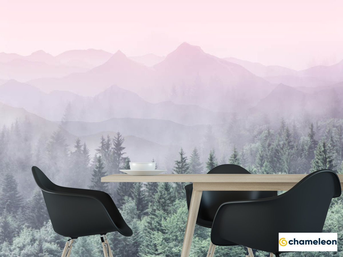 Фотошпалери «Фотошпалери ліс з рожевими горами», (арт. 28773) - купити в інтернет-магазині «Будинок Фотошпалер» Хамелеон