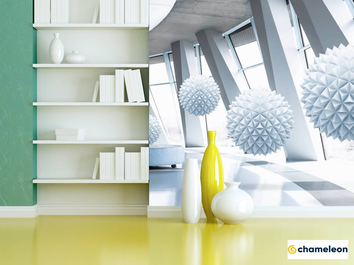 Фотошпалери «Фотошпалери сфери 3д в кімнаті», (арт. 28957) - купити в інтернет-магазині «Будинок Фотошпалер» Хамелеон