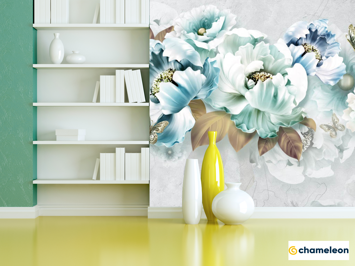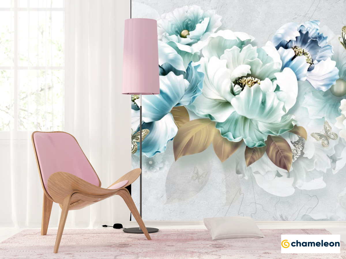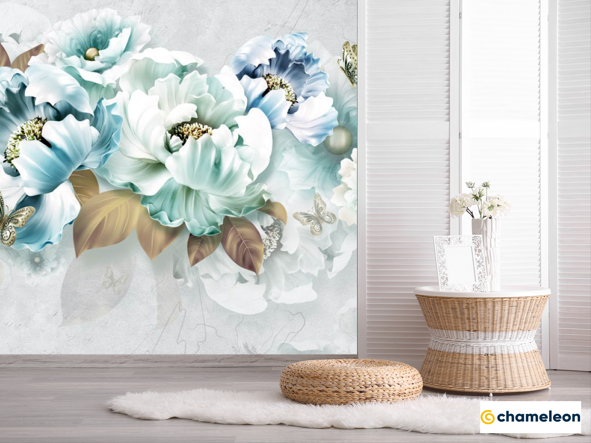 Фотошпалери «Фотошпалери блакитні 3Д квіти», (арт. 29008) - купити в інтернет-магазині «Будинок Фотошпалер» Хамелеон