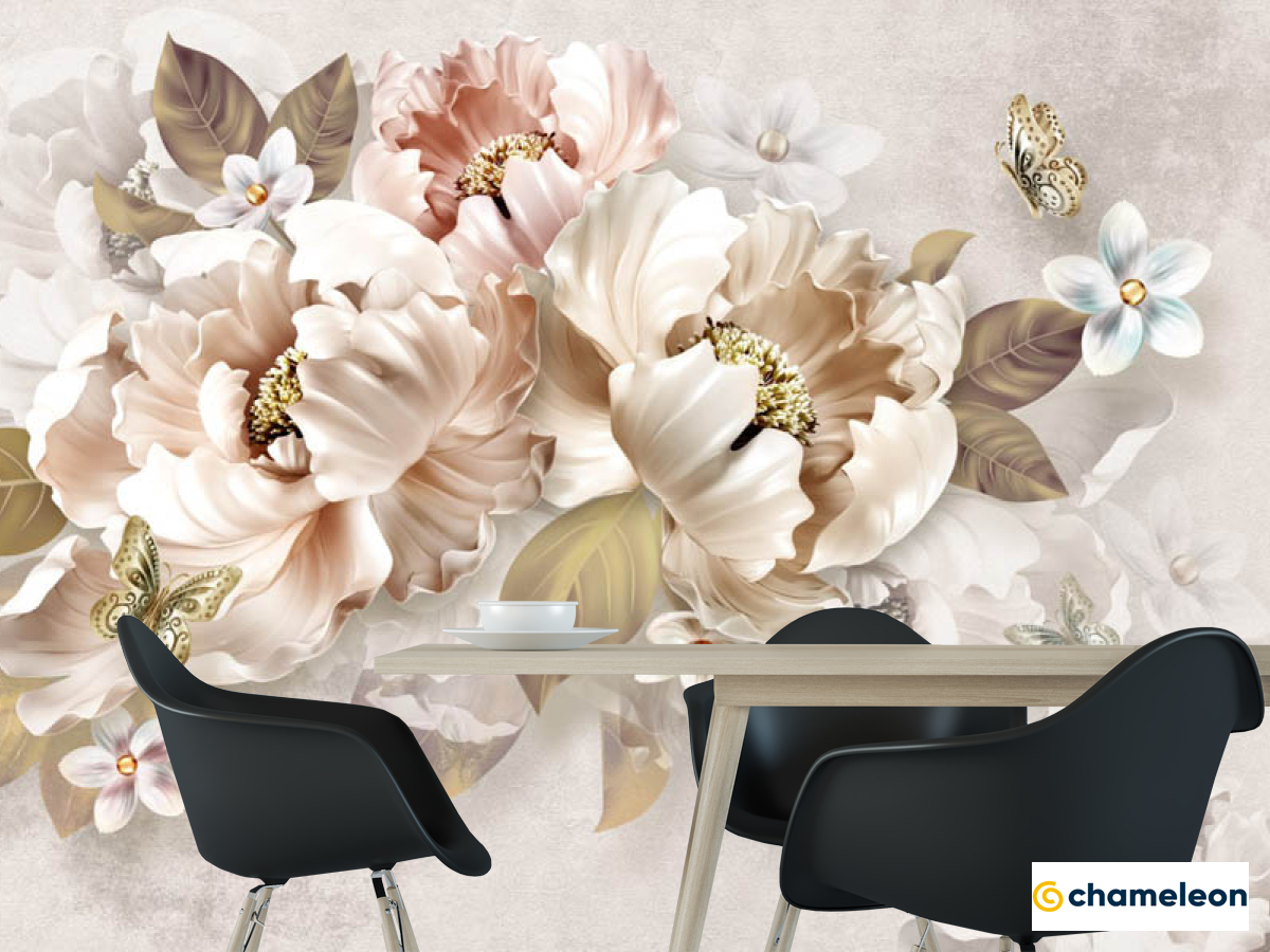 Фотошпалери золоті 3Д квіти