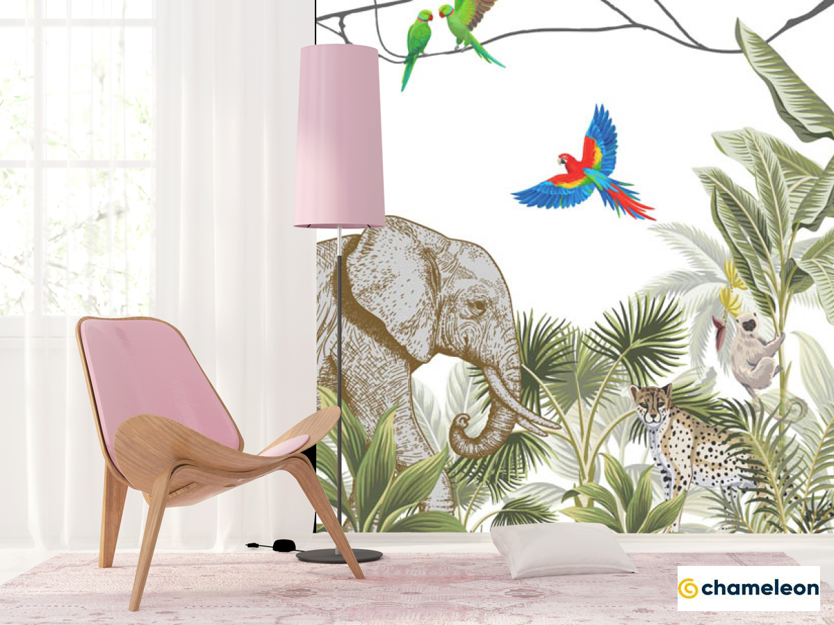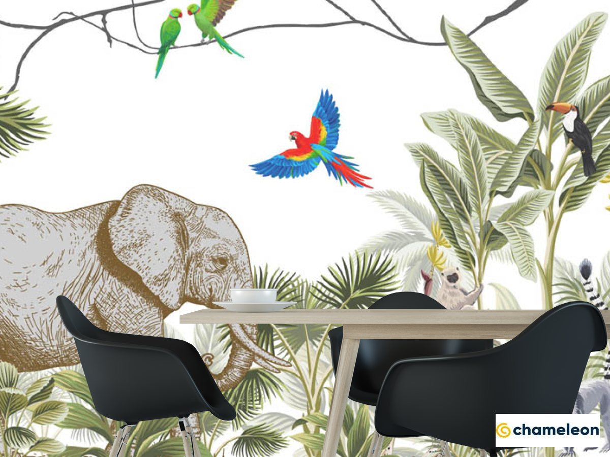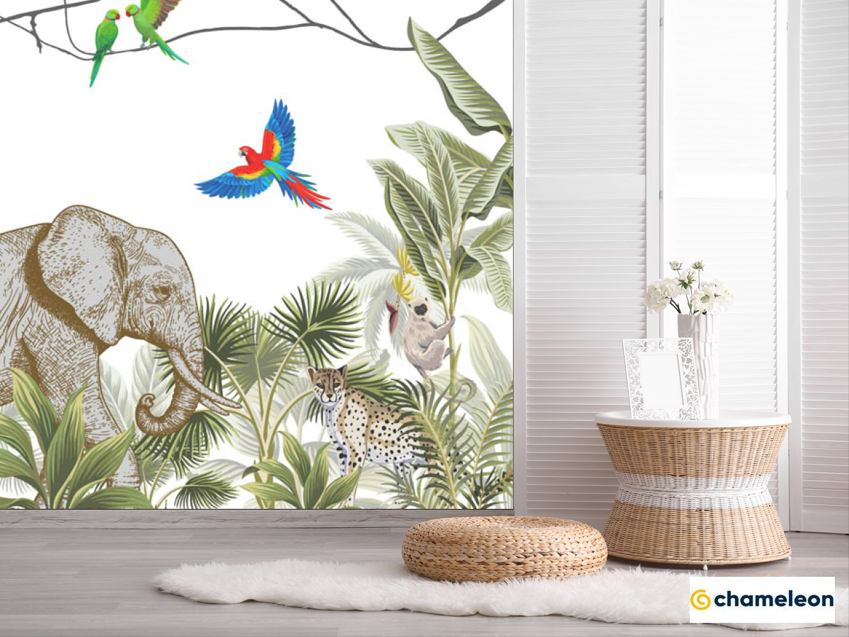 Фотошпалери «Фотошпалери джунглі з тваринами», (арт. 30048) - купити в інтернет-магазині «Будинок Фотошпалер» Хамелеон