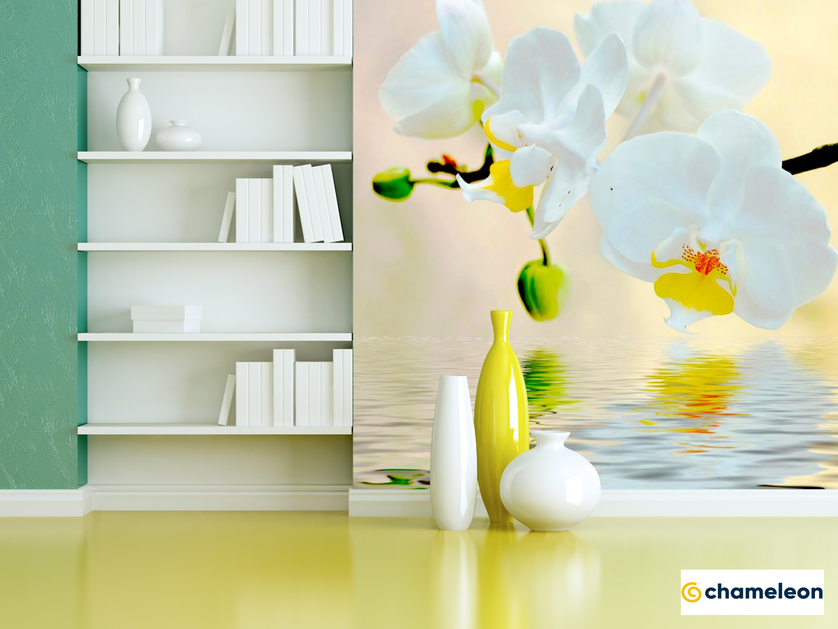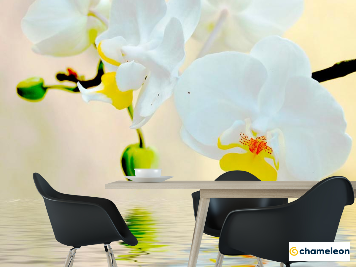 Фотошпалери «Фотошпалери Білосніжні орхідеї у воді», (арт. 3016) - купити в інтернет-магазині «Будинок Фотошпалер» Хамелеон
