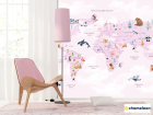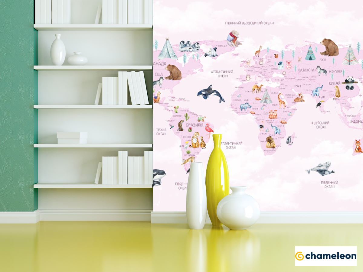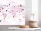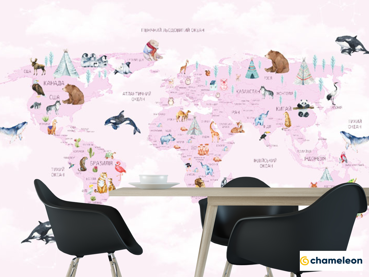 Фотошпалери карта дитяча з хмарками українською мовою в рожевому кольорі.