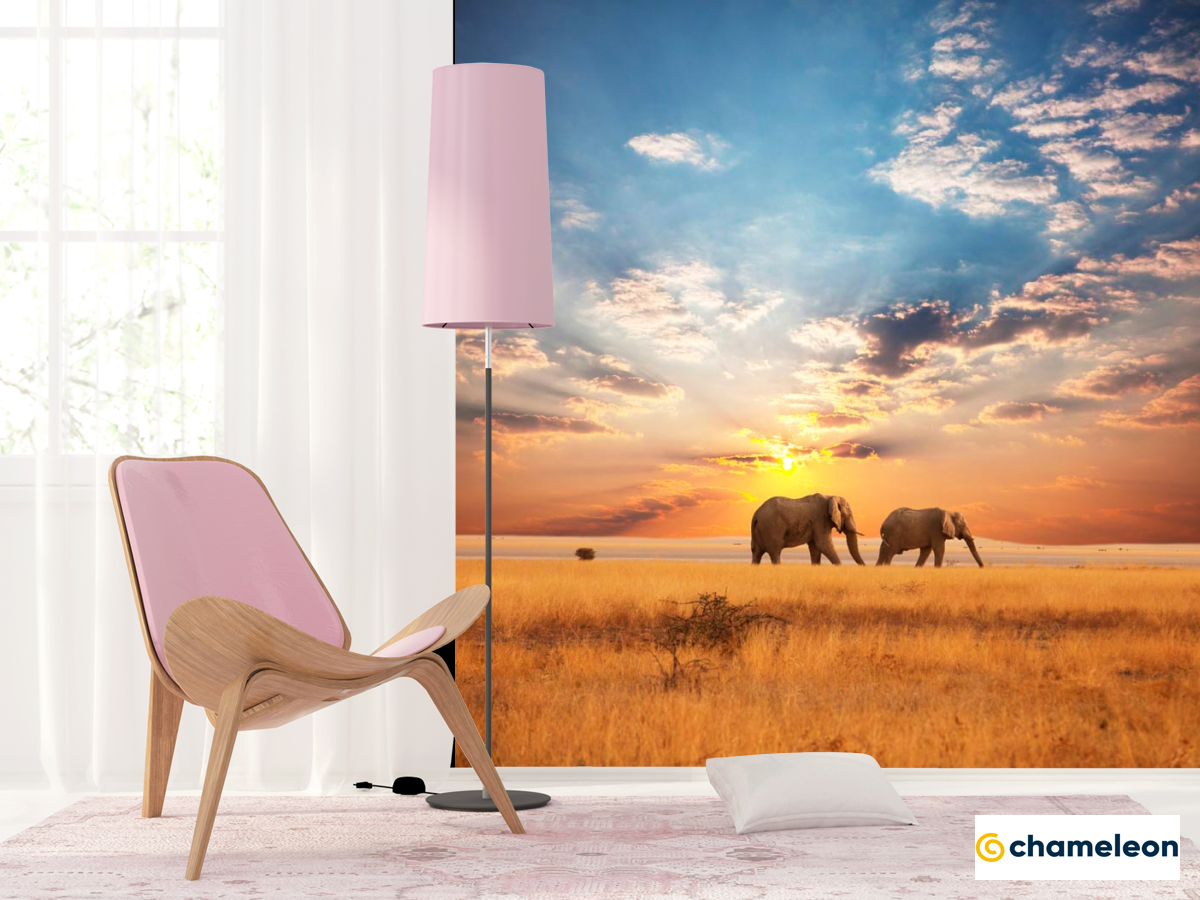 Фотошпалери «Фотошпалери Слони на заході», (арт. 3055) - купити в інтернет-магазині «Будинок Фотошпалер» Хамелеон