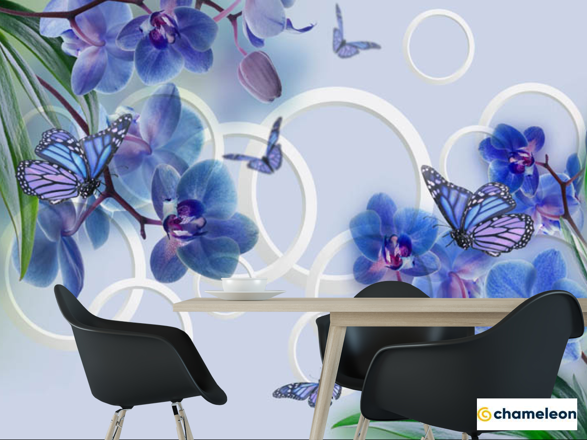 Фотошпалери «Фотошпалери сині орхідеї і метелики», (арт. 30824) - купити в інтернет-магазині «Будинок Фотошпалер» Хамелеон