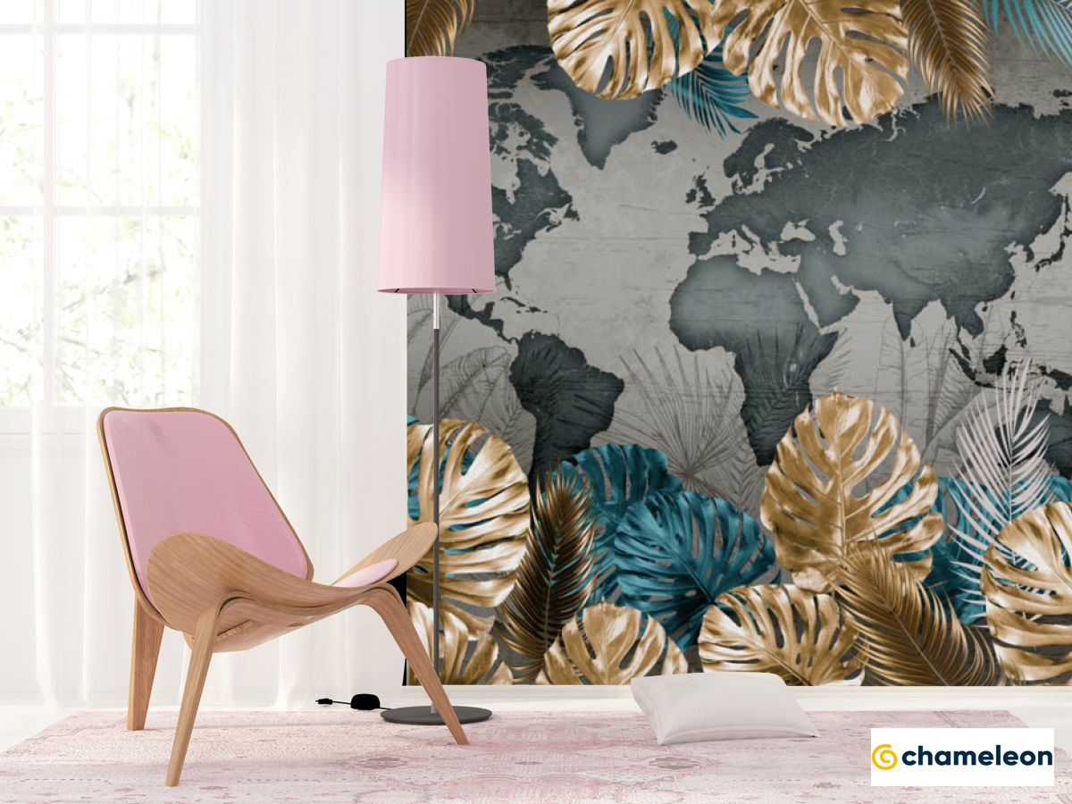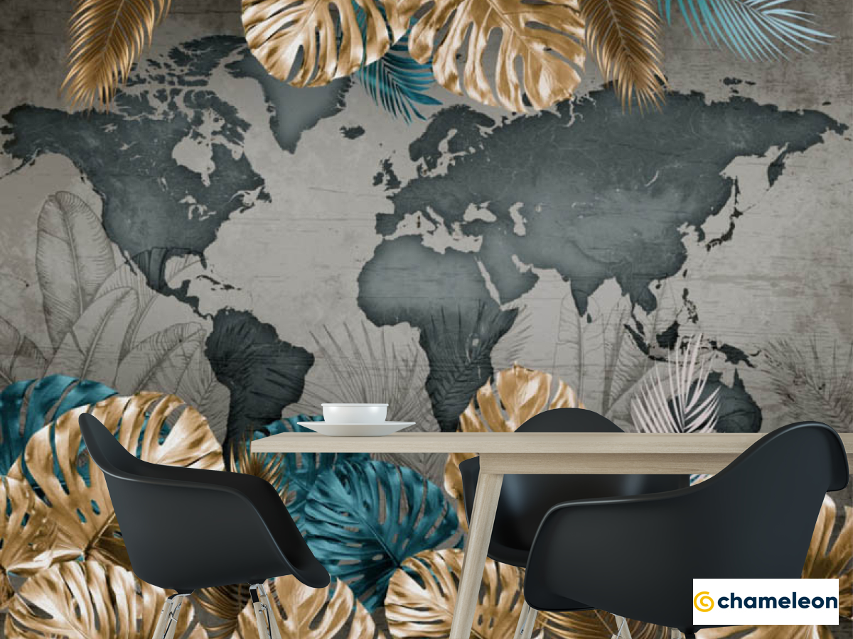 Фотошпалери «Фотошпалери листя з картою», (арт. 30972) - купити в інтернет-магазині «Будинок Фотошпалер» Хамелеон