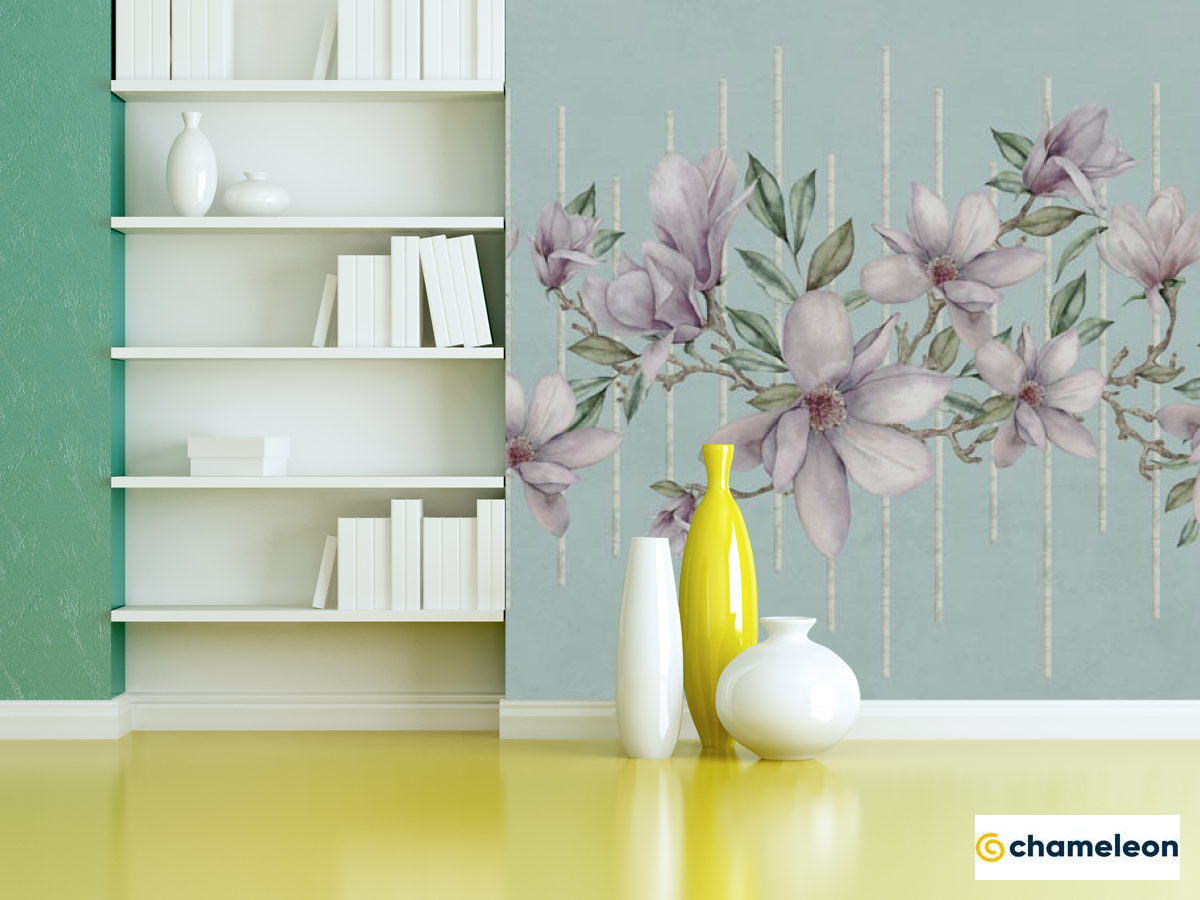 Фотошпалери «Фотошпалери магнолії на тлі бірюзи», (арт. 30976) - купити в інтернет-магазині «Будинок Фотошпалер» Хамелеон