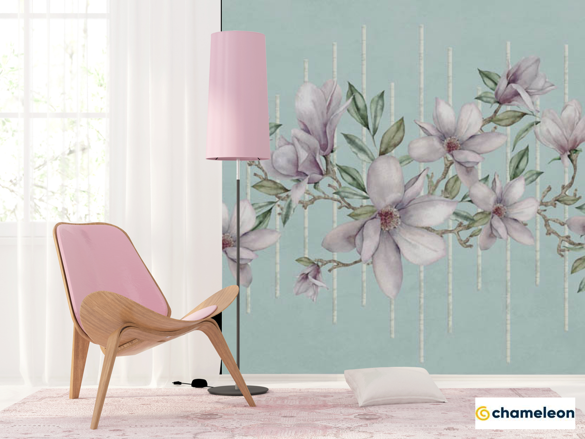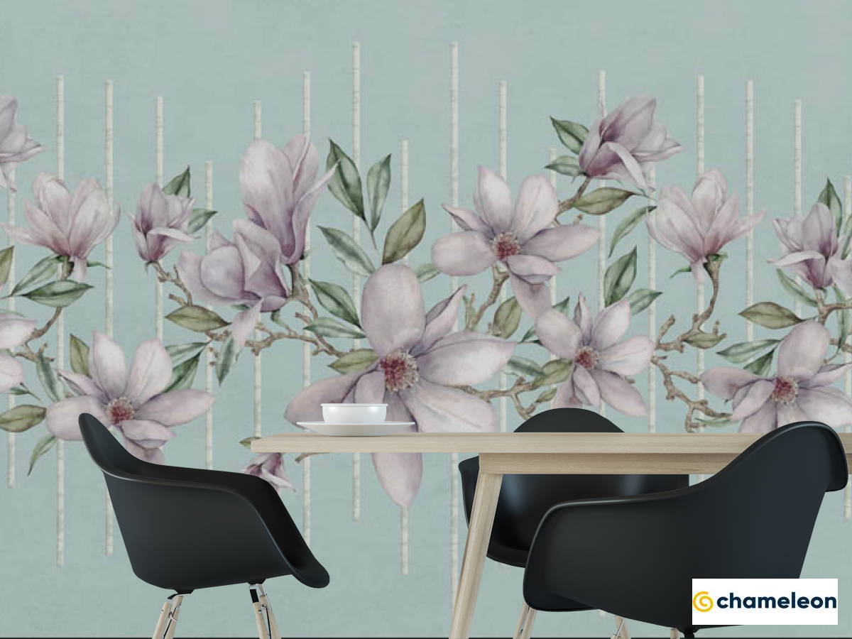 Фотошпалери магнолії на тлі бірюзи