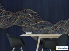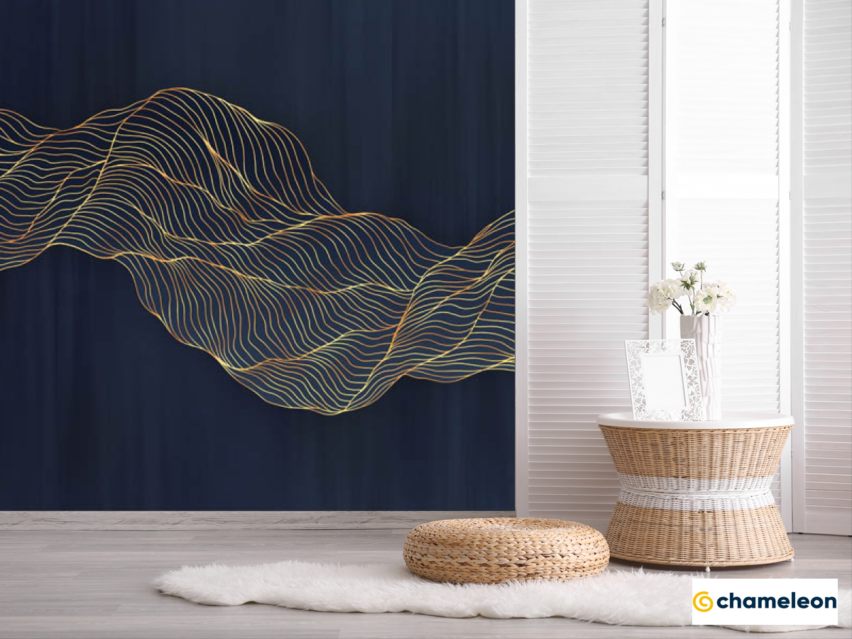 Фотошпалери абстрактні хвилі золоті на синьому тлі