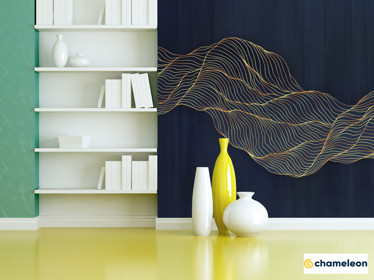 Фотошпалери «Фотошпалери абстрактні хвилі золоті на синьому тлі», (арт. 31002) - купити в інтернет-магазині «Будинок Фотошпалер» Хамелеон