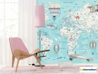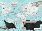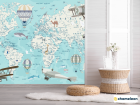 Фотошпалери Бірюзова карта дитячий Англійська з літаками