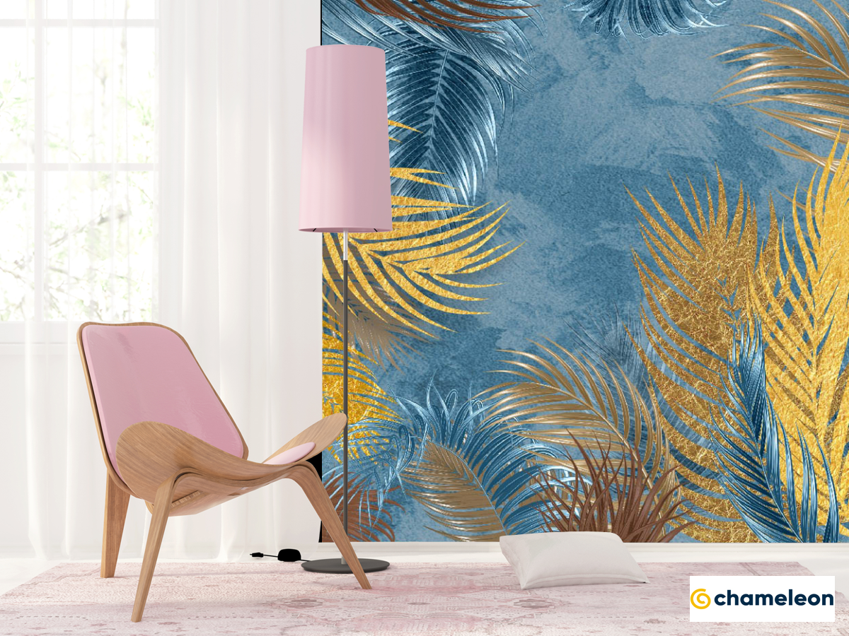Фотошпалери «Фотошпалери золоті тропічні листя», (арт. 31515) - купити в інтернет-магазині «Будинок Фотошпалер» Хамелеон