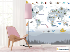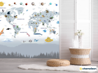 Фотошпалери «Фотошпалери дитяча карта світу з тваринами», (арт. 31769) - купити в інтернет-магазині «Будинок Фотошпалер» Хамелеон