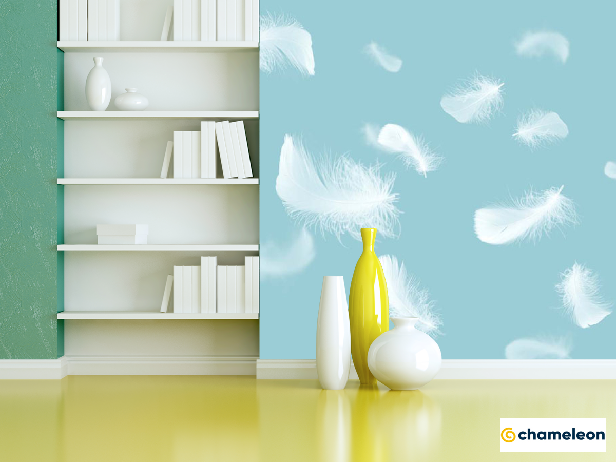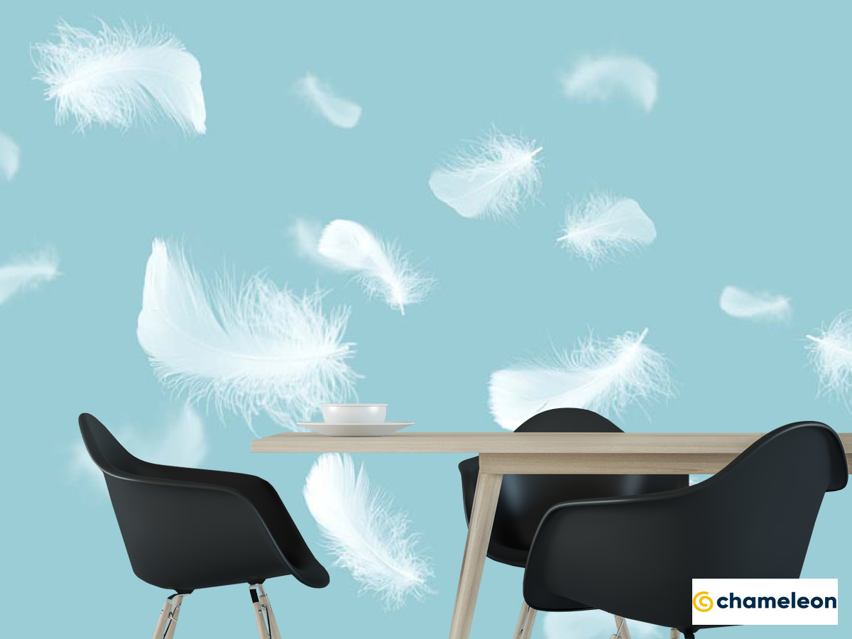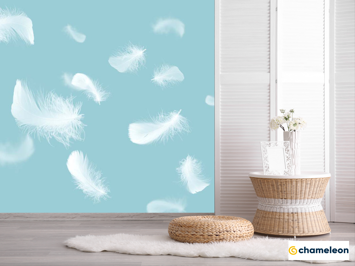 Фотошпалери «Фотошпалери білі пір'я на блакитному», (арт. 32465) - купити в інтернет-магазині «Будинок Фотошпалер» Хамелеон