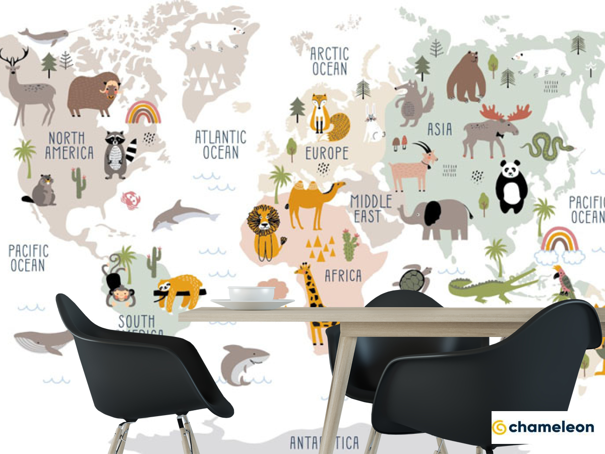 Фотошпалери карта дитяча з тваринами англійською мовою