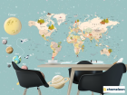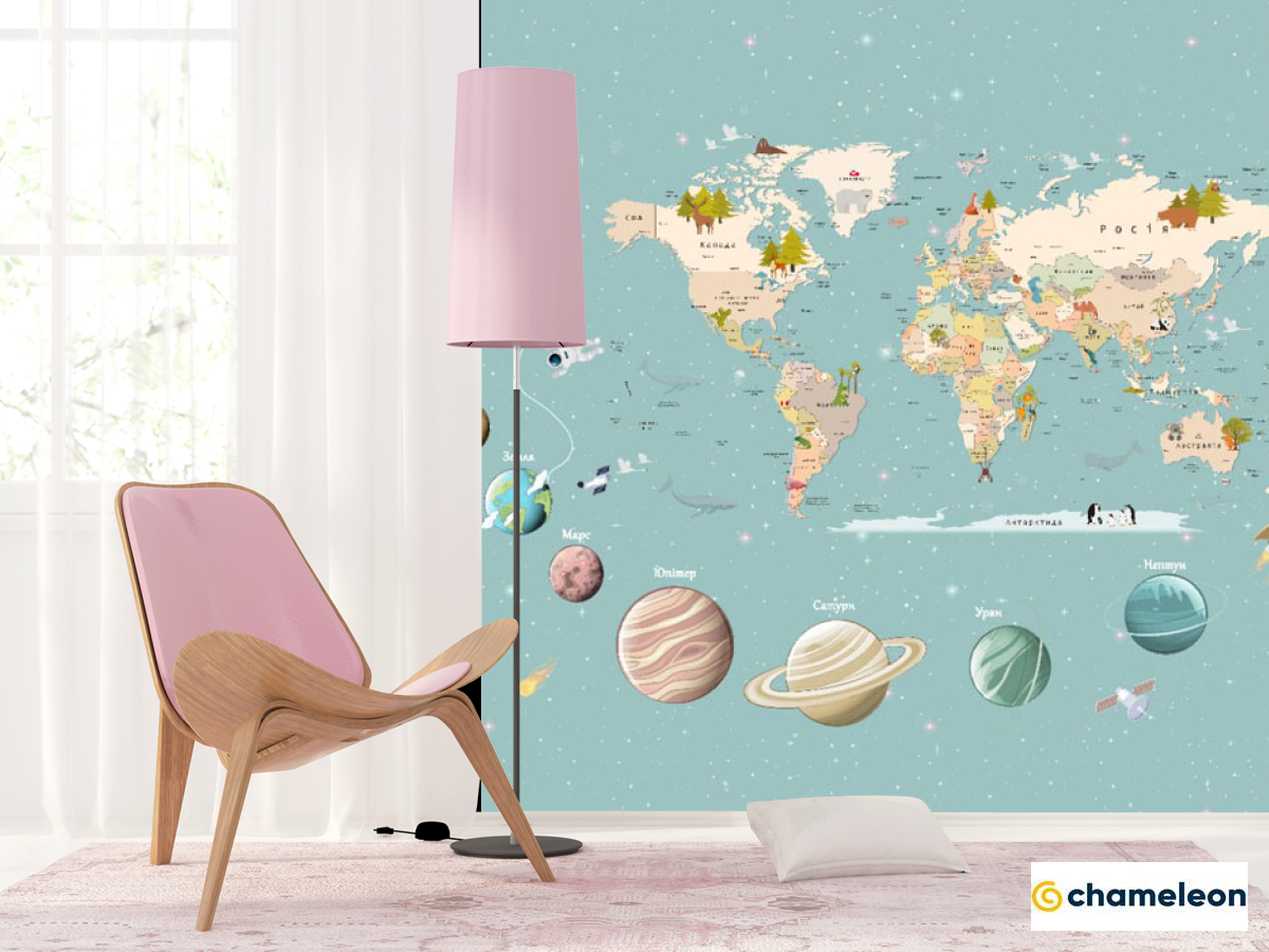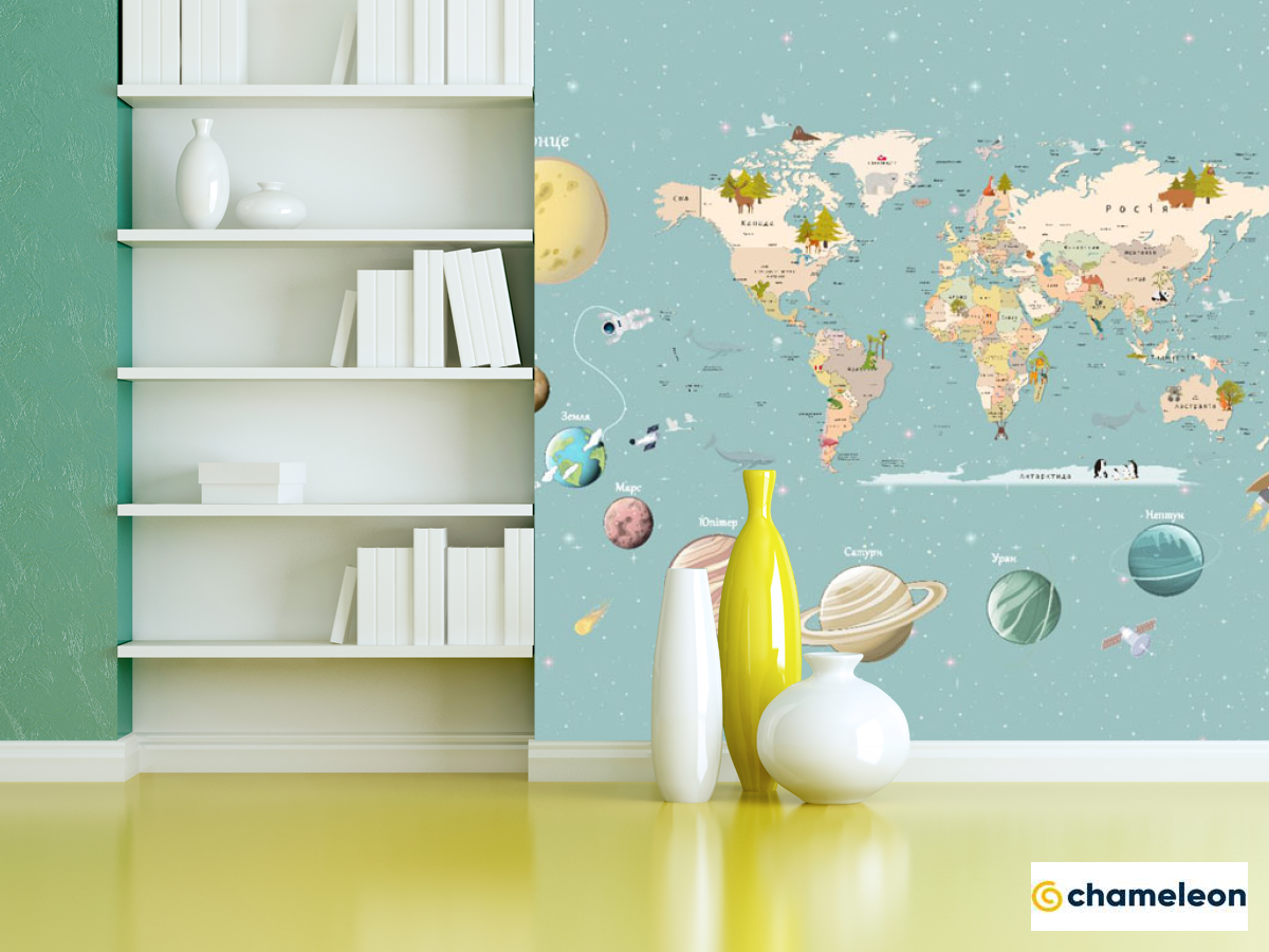 Фотошпалери «Фотошпалери Дитяча карта українською з планетами», (арт. 33156) - купити в інтернет-магазині «Будинок Фотошпалер» Хамелеон