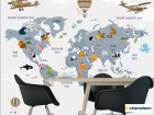 Фотошпалери «Фотошпалери Карта світу дитяча українською», (арт. 33278) - купити в інтернет-магазині «Будинок Фотошпалер» Хамелеон