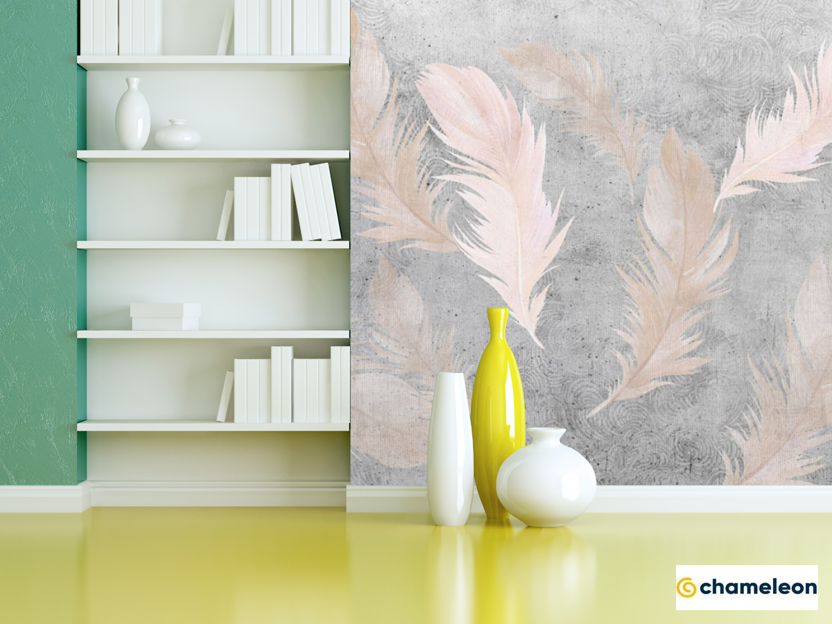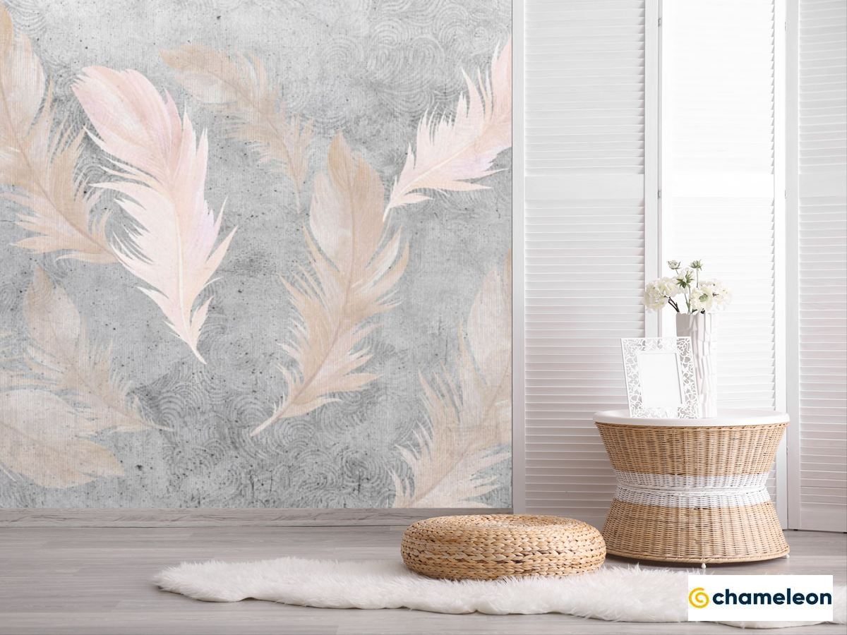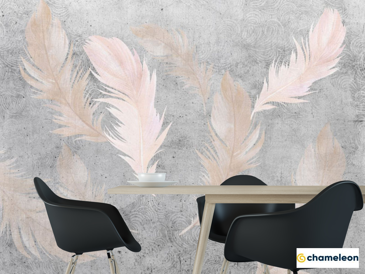 Фотошпалери «Фотошпалери рожеві пір'я на тлі бетону.», (арт. 33284) - купити в інтернет-магазині «Будинок Фотошпалер» Хамелеон