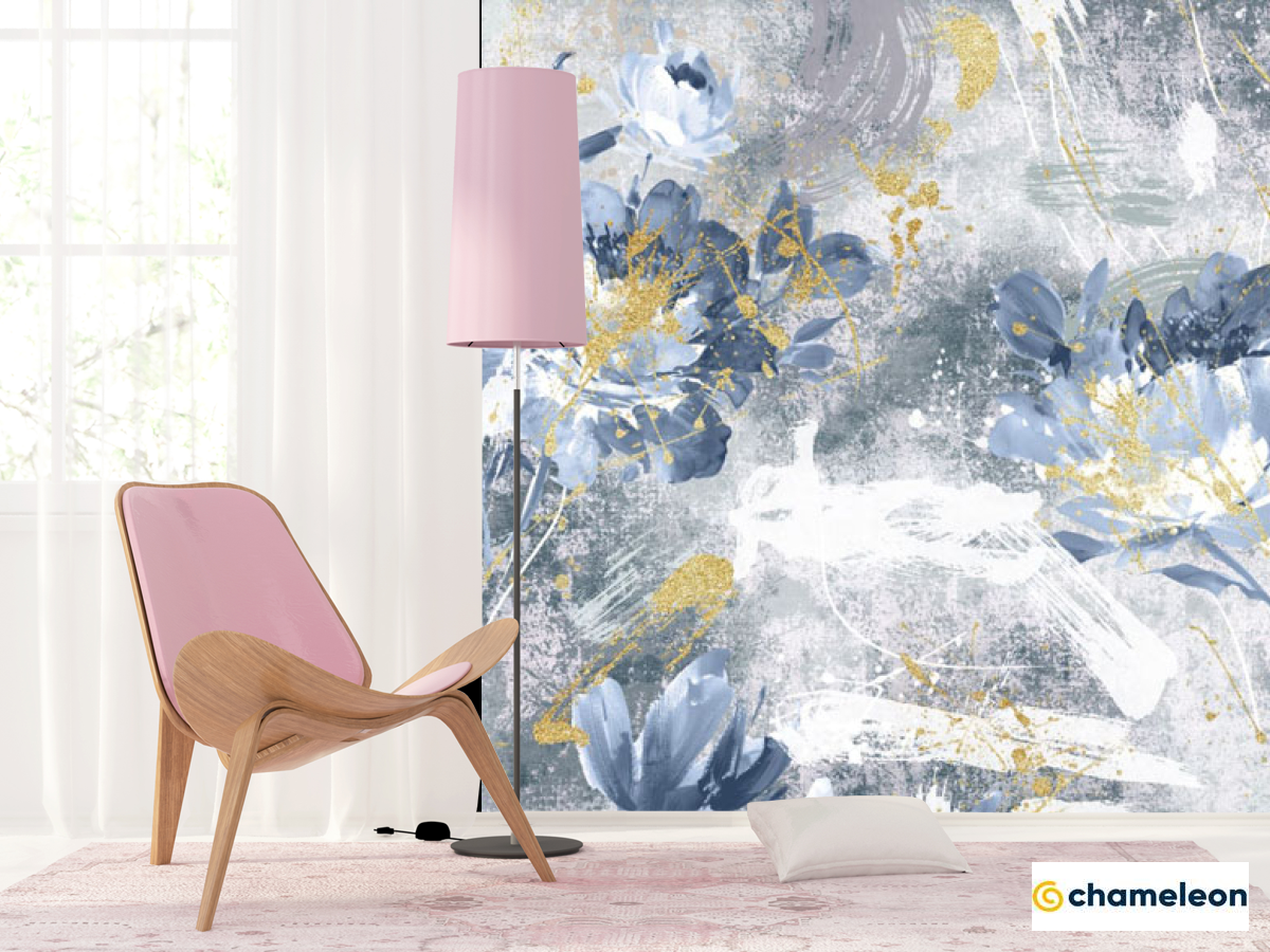 Фотошпалери «Фотошпалери дизайнерські квіти з золотом сині.», (арт. 33327_2) - купити в інтернет-магазині «Будинок Фотошпалер» Хамелеон